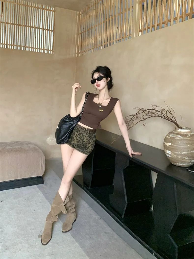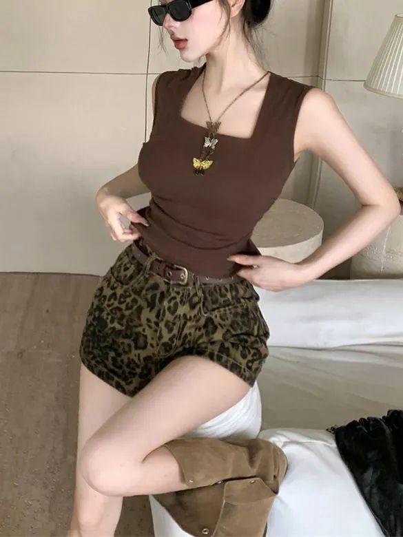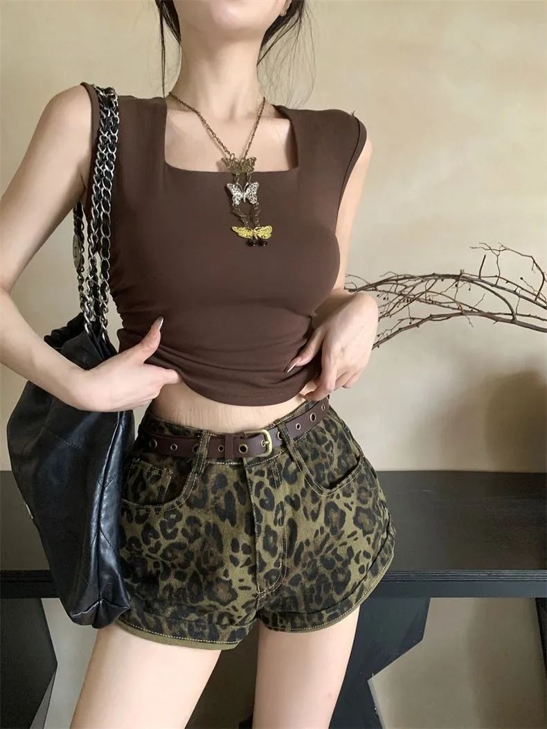 아메리칸 스타일 레트로 씻은 스파이스 소녀 레오파드 무늬 반바지 여성 하이 스트리트 폐기물 토양 스타일 슬리밍 스트레이트 레그 와이드 레그 힙 핫 트렌디 팬츠