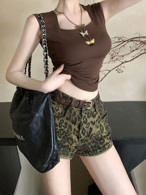 아메리칸 스타일 레트로 씻은 스파이스 소녀 레오파드 무늬 반바지 여성 하이 스트리트 폐기물 토양 스타일 슬리밍 스트레이트 레그 와이드 레그 힙 핫 트렌디 팬츠스토어 가기