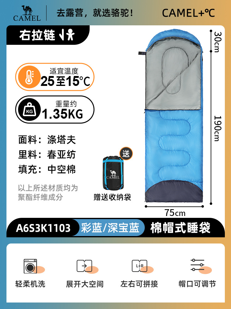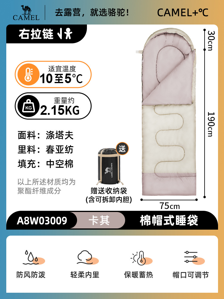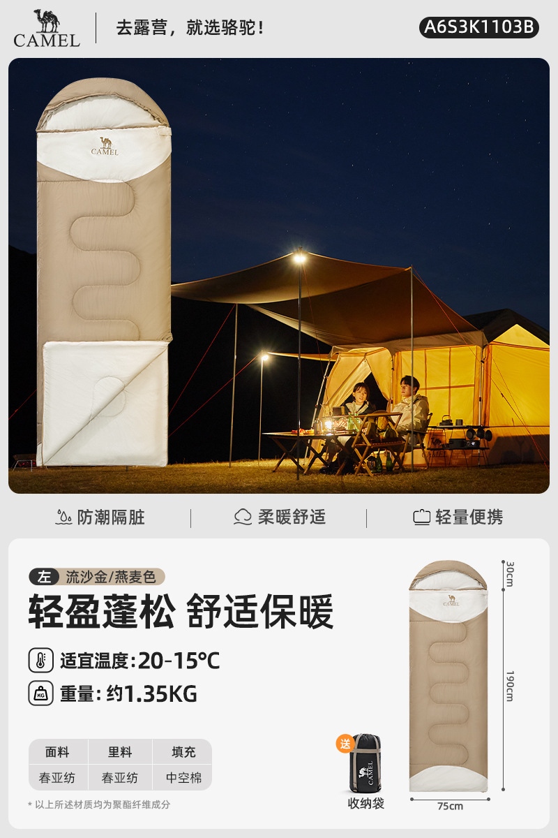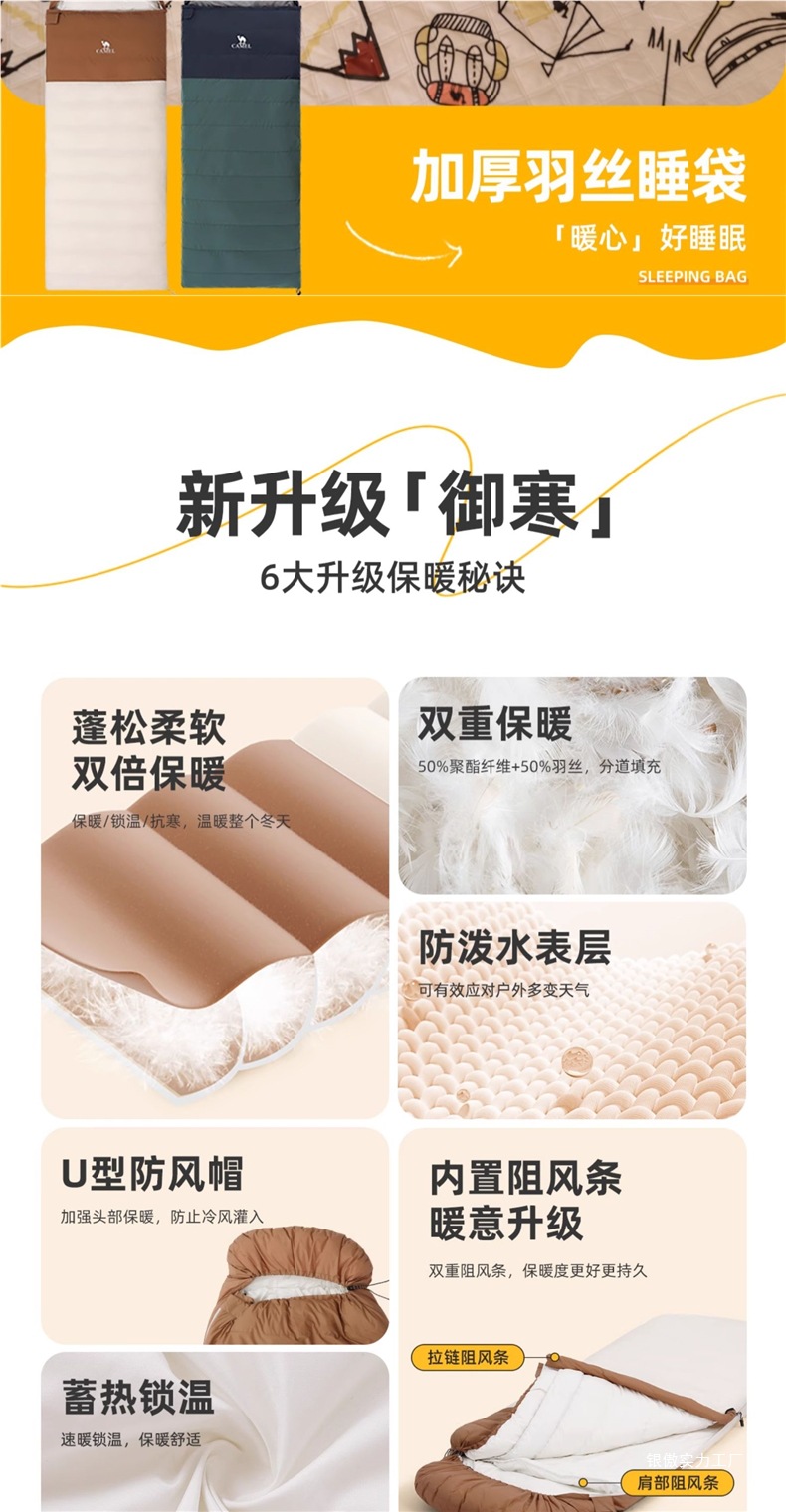 카멜 성인 슬리핑 백 겨울 시즌 두껍게 감기 방지 따뜻한 사무실 학생 어린이 점심 휴식 슬리핑 백 야외 캠핑스토어 가기