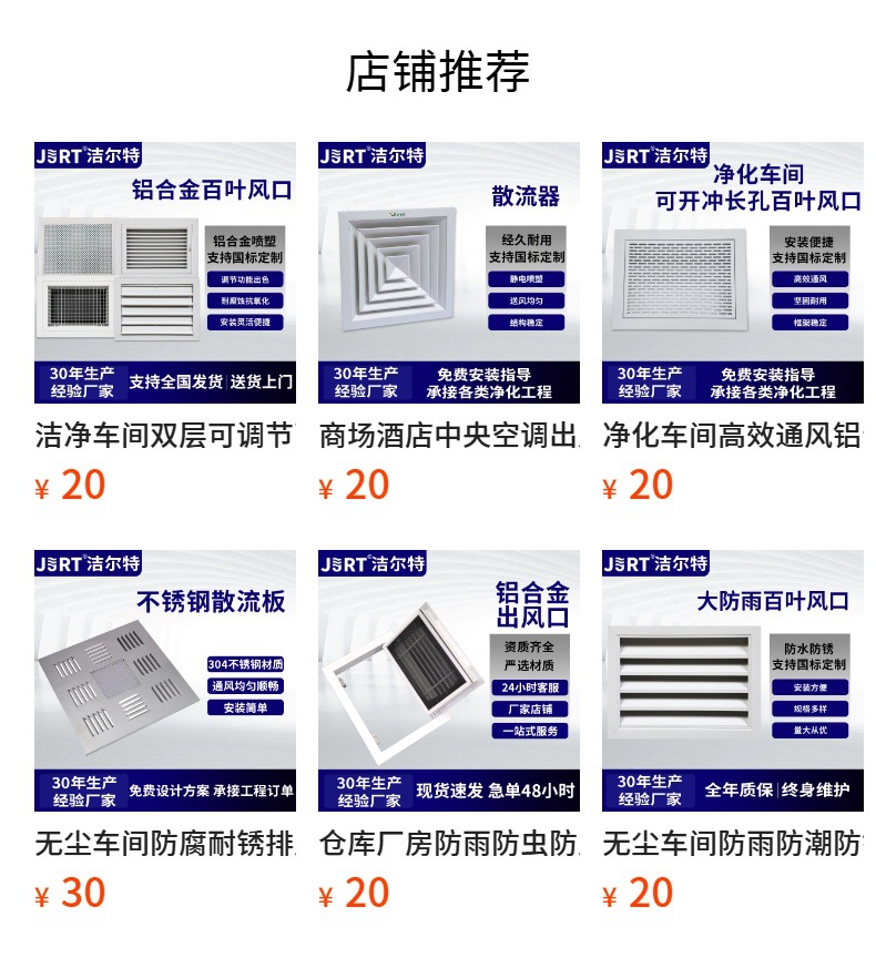 먼지 없는 작업장용 방수 및 방습 알루미늄 합금 블라인드 도매 외벽 천장 개폐식 고정 블라인드 배기구
