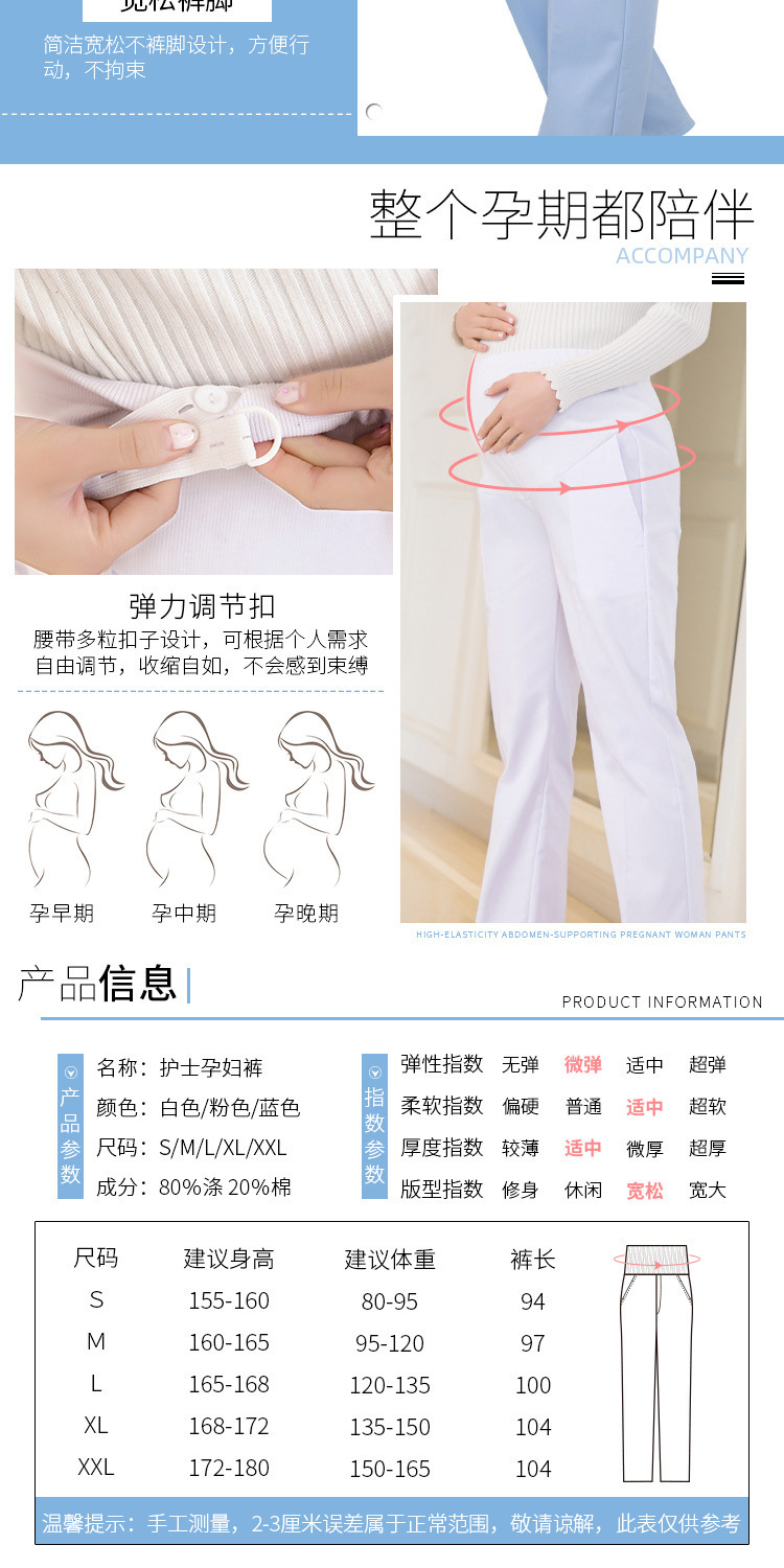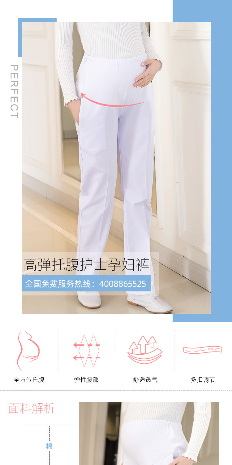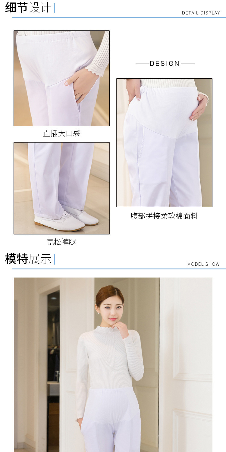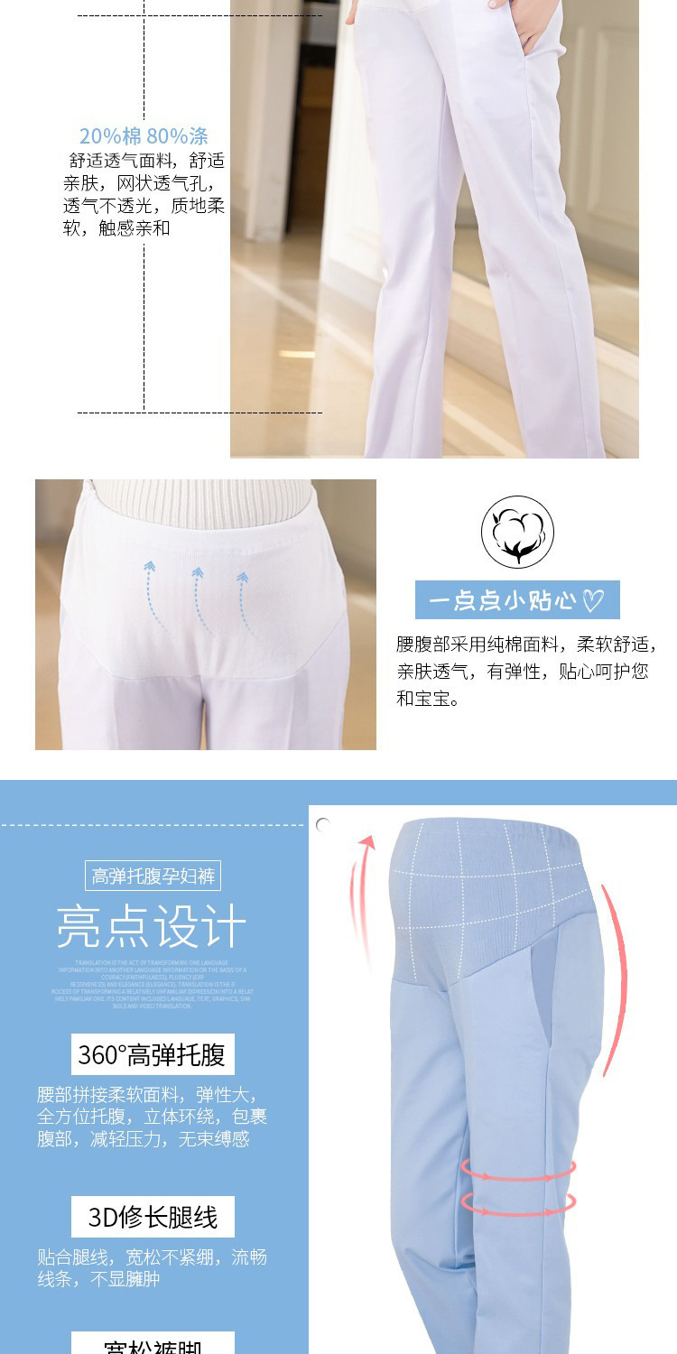 임산부 간호사 바지 조정 작업 바지 배꼽 흰색 파란색 플러스 사이즈 탄성 허리 관리 작업자 큰 배는 높은 탄성을 입을 수 있습니다스토어 가기