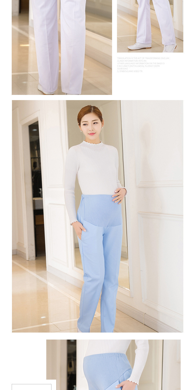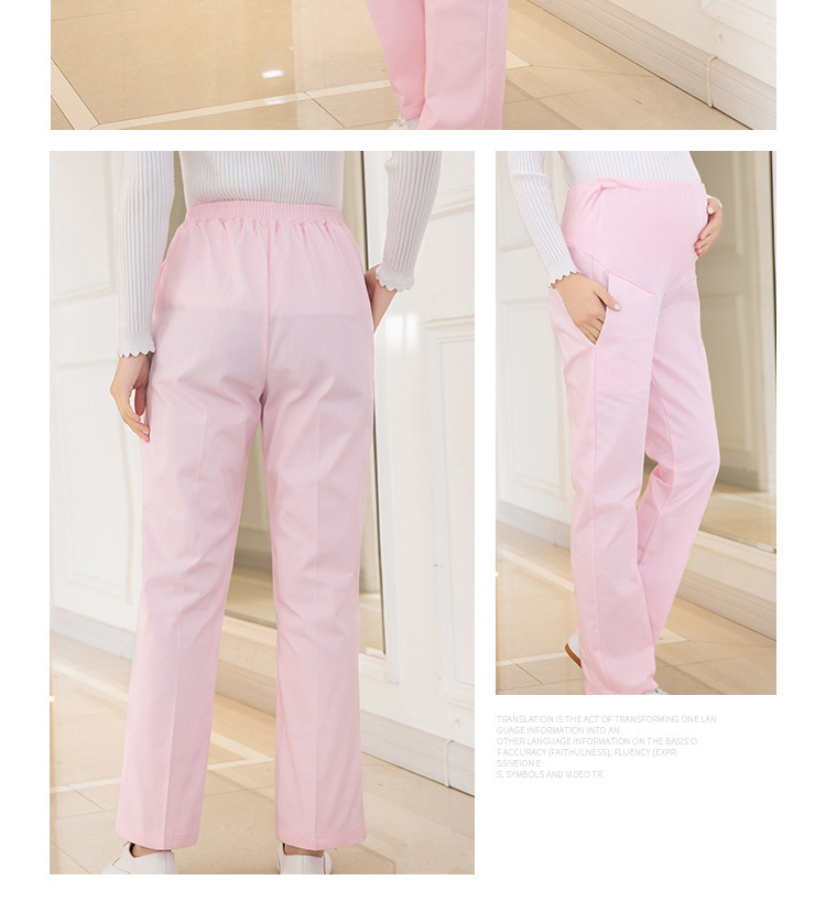임산부 간호사 바지 조정 작업 바지 배꼽 흰색 파란색 플러스 사이즈 탄성 허리 관리 작업자 큰 배는 높은 탄성을 입을 수 있습니다