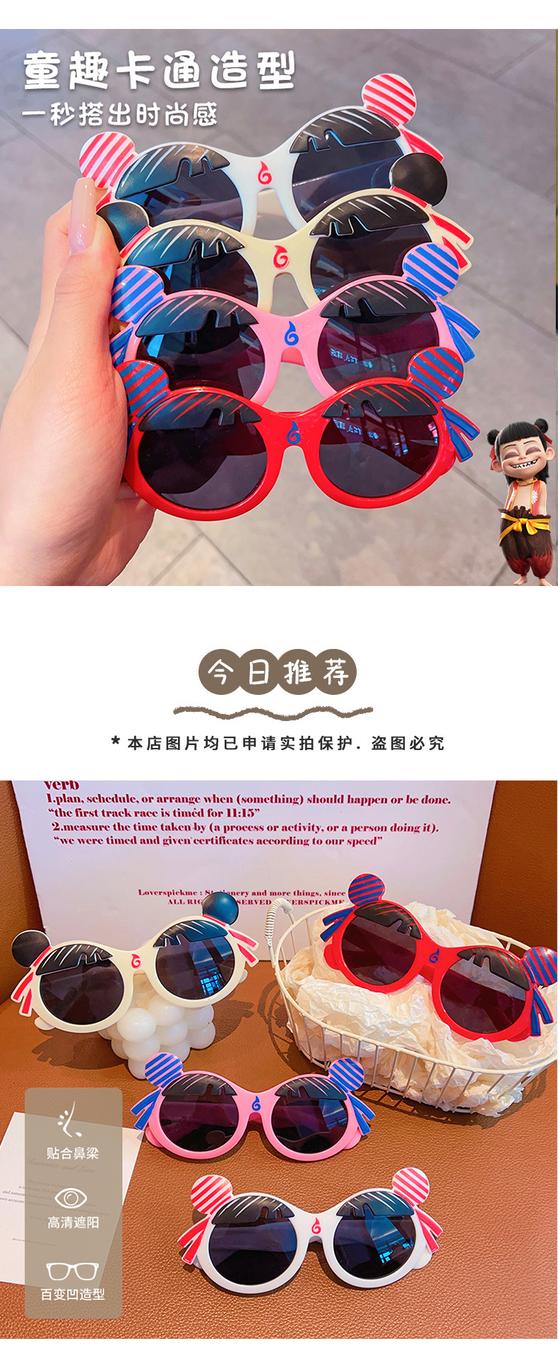 2025 Anime Nezha 어린이 선글라스 작은 빨간 승마 책 남성과 여성의 아기 인터넷 폭발 자외선 방지 만화 선글라스스토어 가기