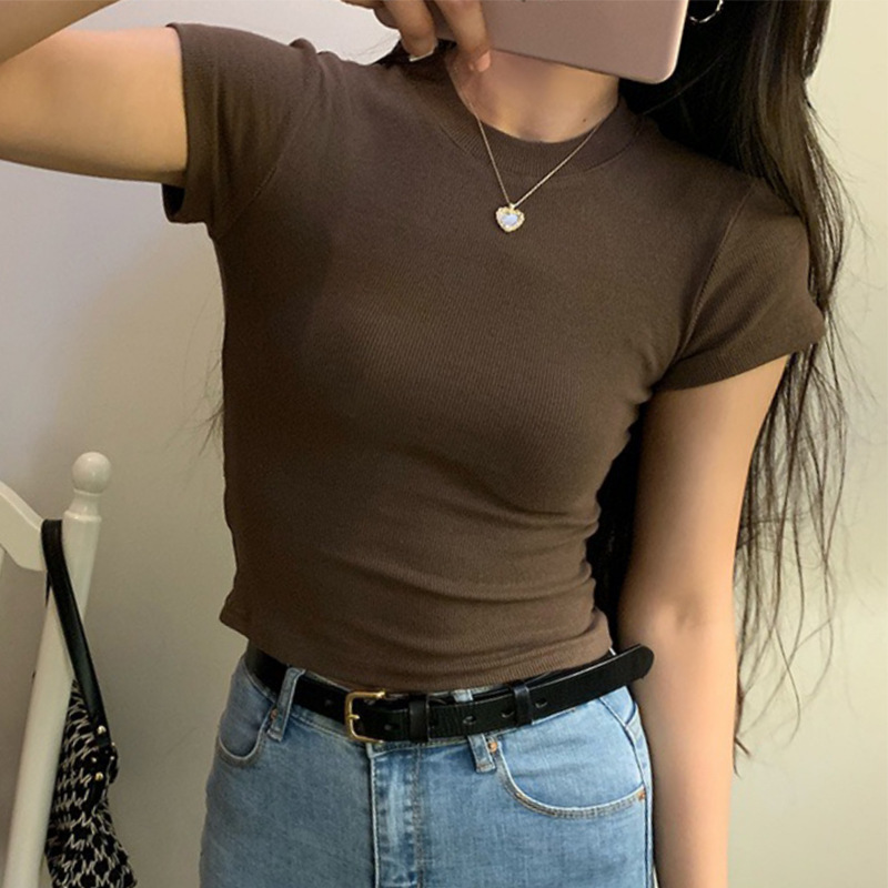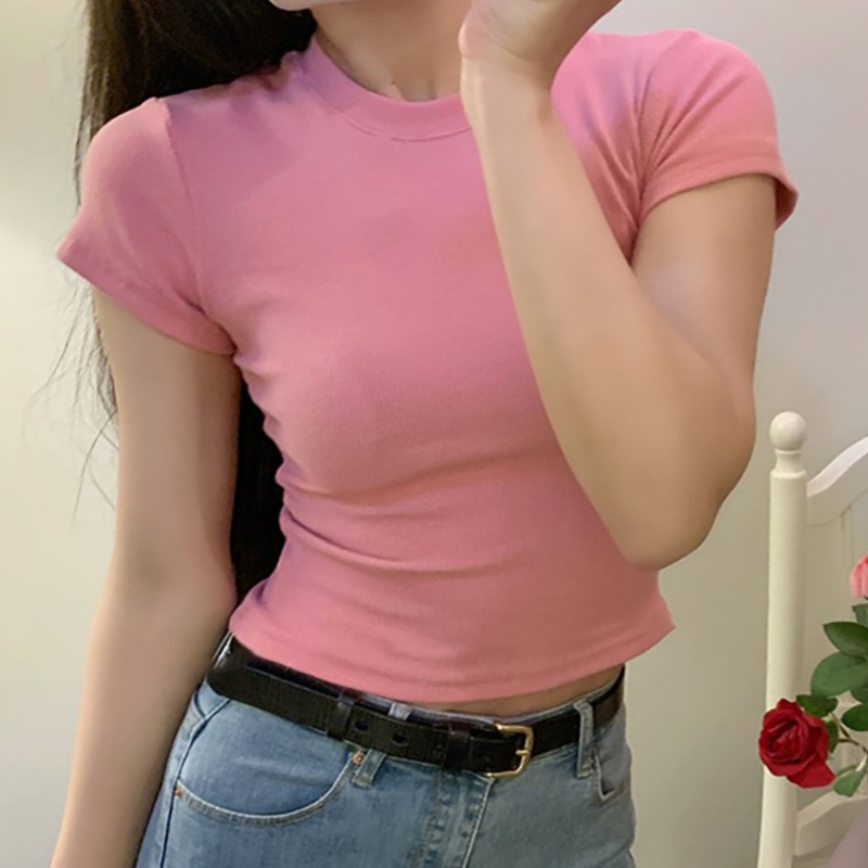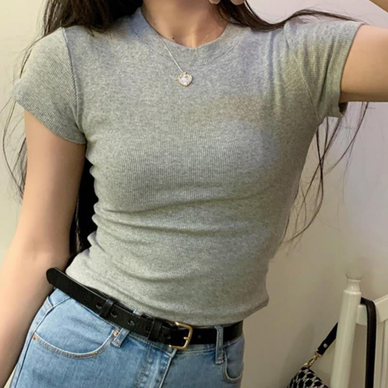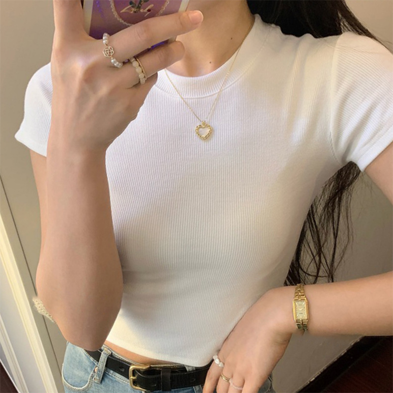 아메리칸 스타일 어깨 스레드 재단 반팔 티셔츠 여성 여름 새로운 쇄골 노출 섹시한 핫 걸스 인스 타 그램 쇼트 탑스토어 가기