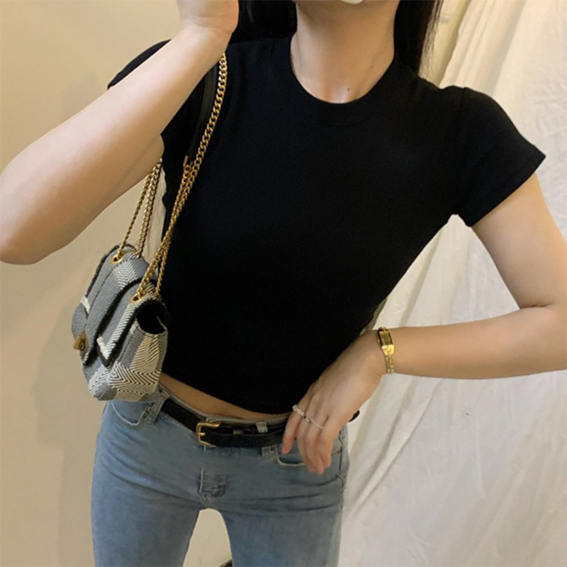 아메리칸 스타일 어깨 스레드 재단 반팔 티셔츠 여성 여름 새로운 쇄골 노출 섹시한 핫 걸스 인스 타 그램 쇼트 탑