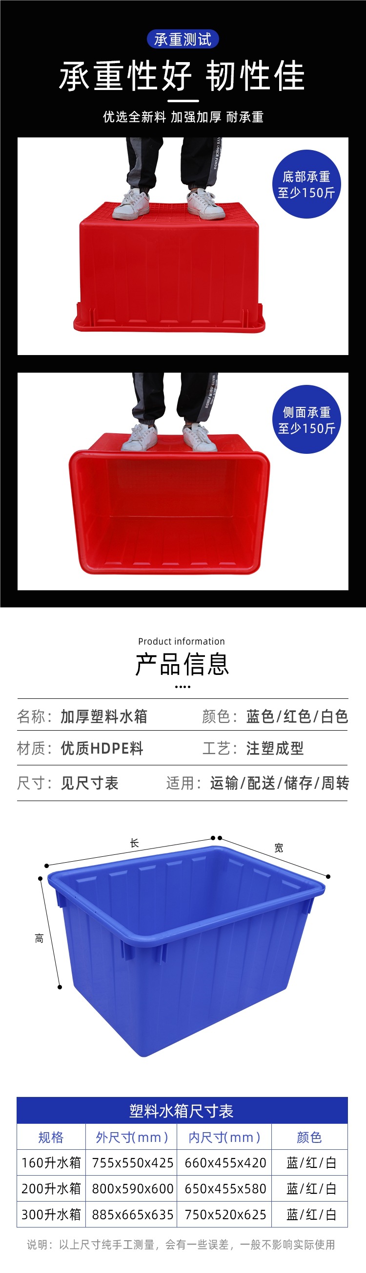 두꺼운 플라스틱 직사각형 Ox Tendon 물 탱크 턴 오버 박스 초대형 물 저장 배럴 물고기 수생 물 탱크 수생 물 탱크스토어 가기