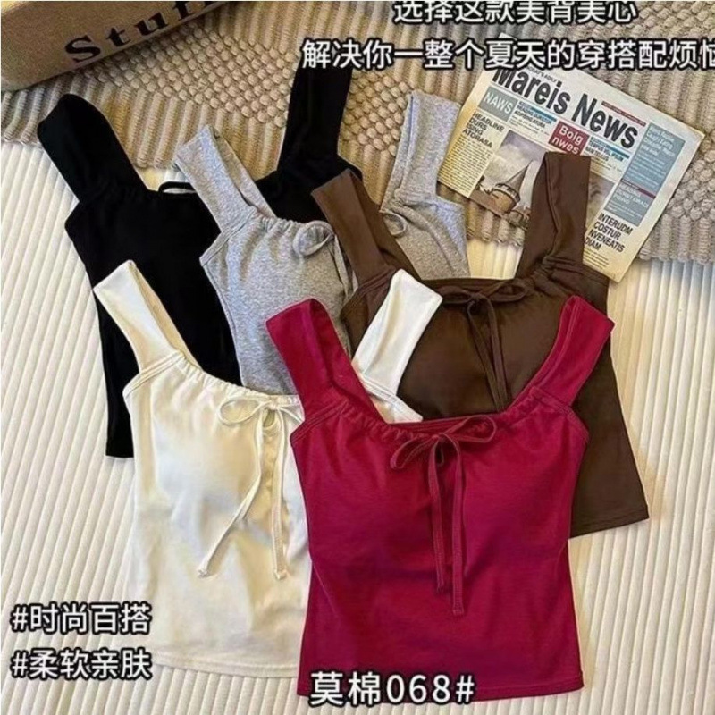 흰색 카미 솔 가슴 패드 여성용 여름 내외형 디자인 틈새 짧은 슬림 핏 민소매 탑스토어 가기