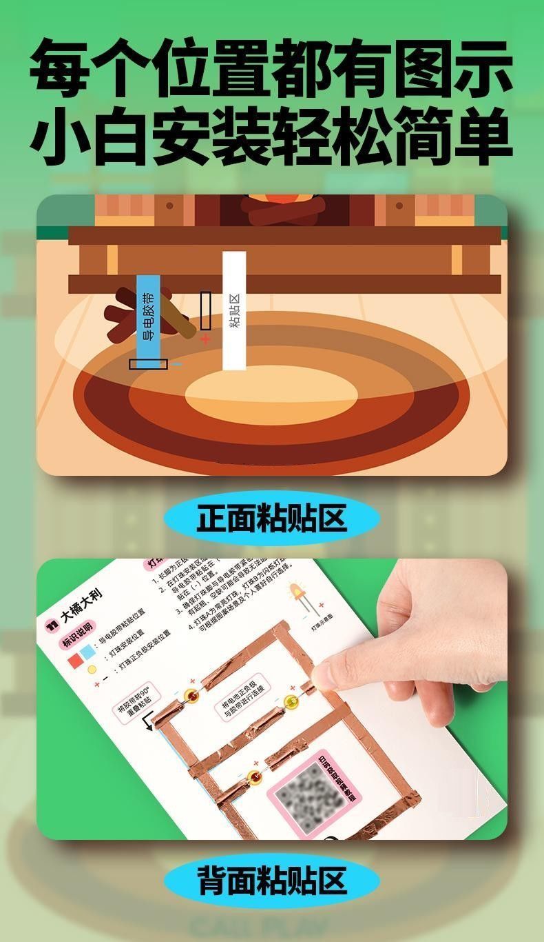 새로운 매직 종이 회로 인사말 카드 새해 빛나는 전자 인사말 카드 DIY 과학 실험 자료 패키지 교육 완구