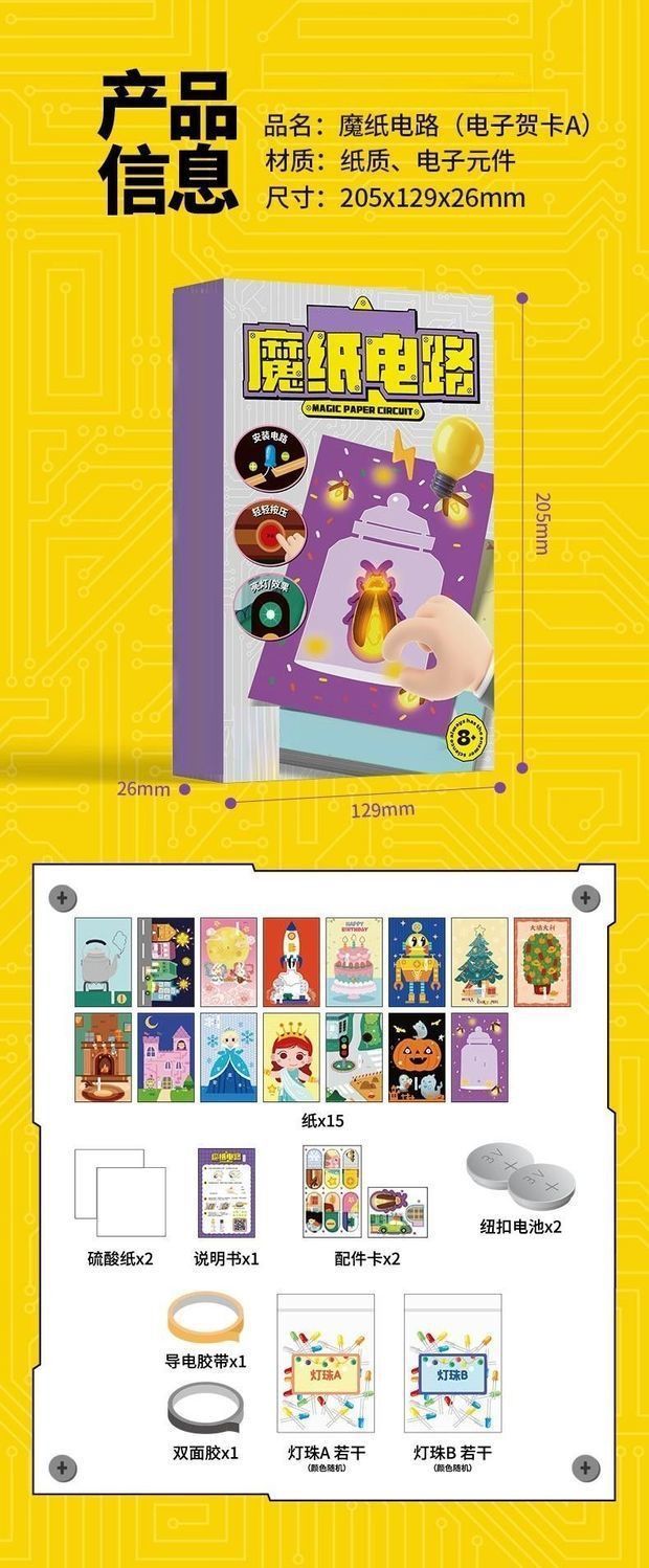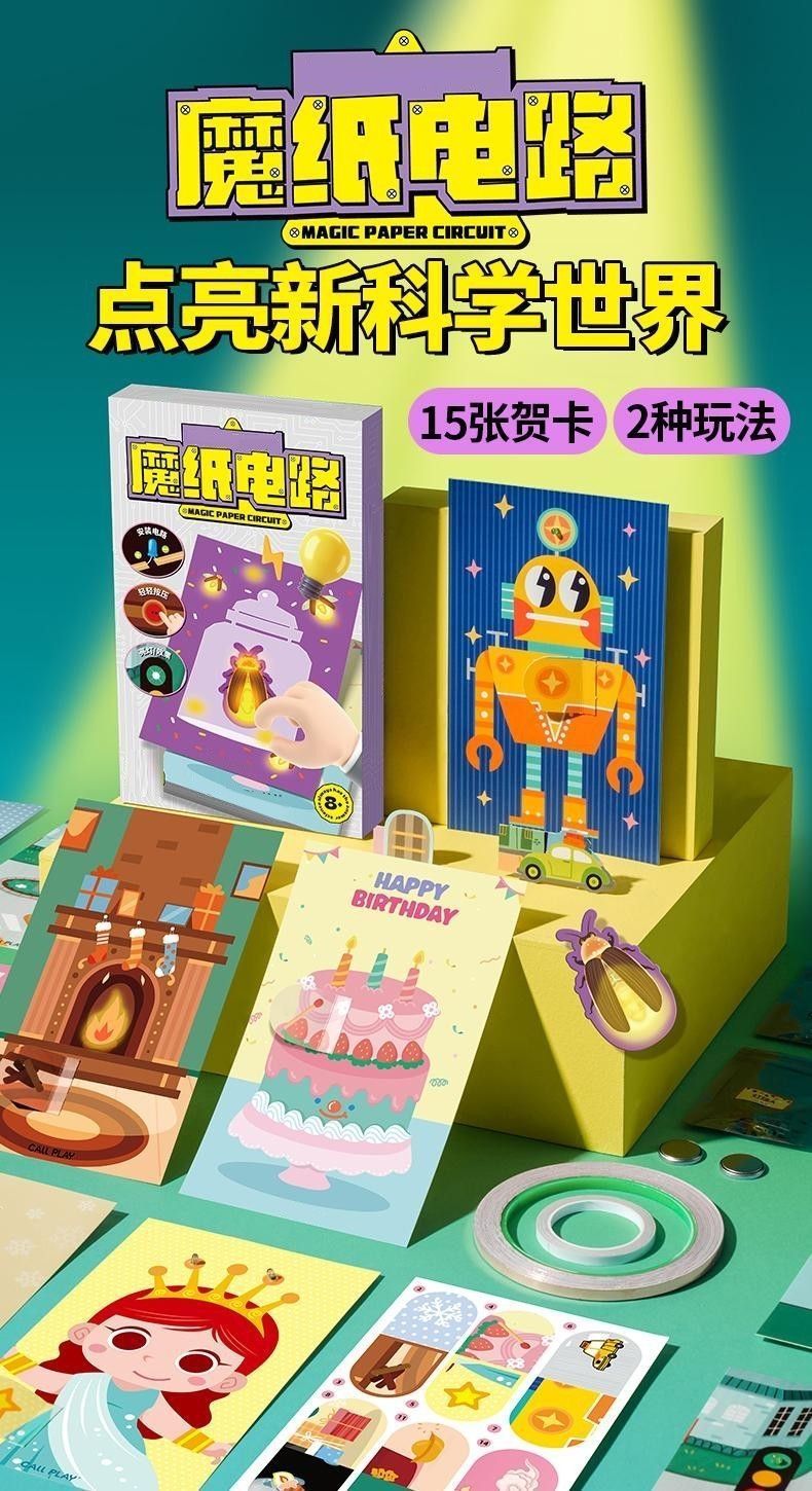 새로운 매직 종이 회로 인사말 카드 새해 빛나는 전자 인사말 카드 DIY 과학 실험 자료 패키지 교육 완구스토어 가기