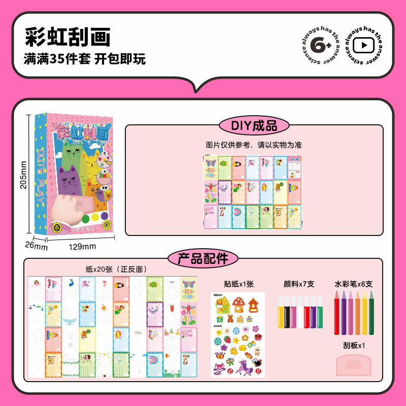 • 레인보우 스크래치 오프 인사말 카드 [파우더 박스 업그레이드 하드커버 버전] 20개의 점각 스크래치 오프 카드, 튜토리얼 포함