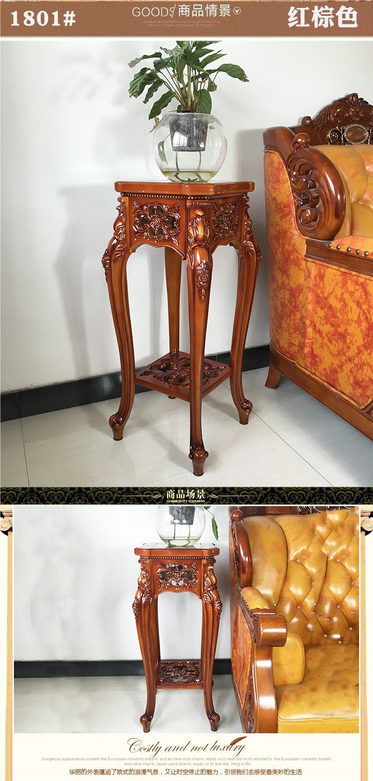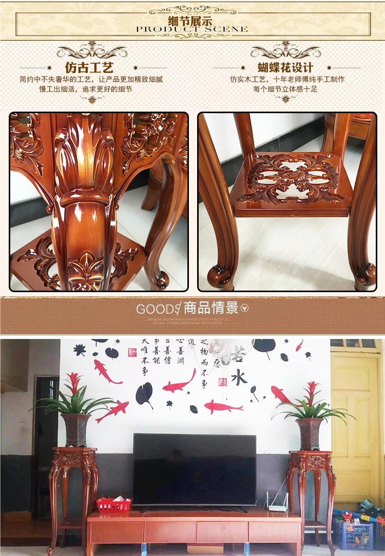 고급 유럽 스타일 꽃 랙 거실 다층 물고기 Var 랙 실내 바닥 서 발코니 모조 단단한 나무 녹색 꽃 냄비 랙