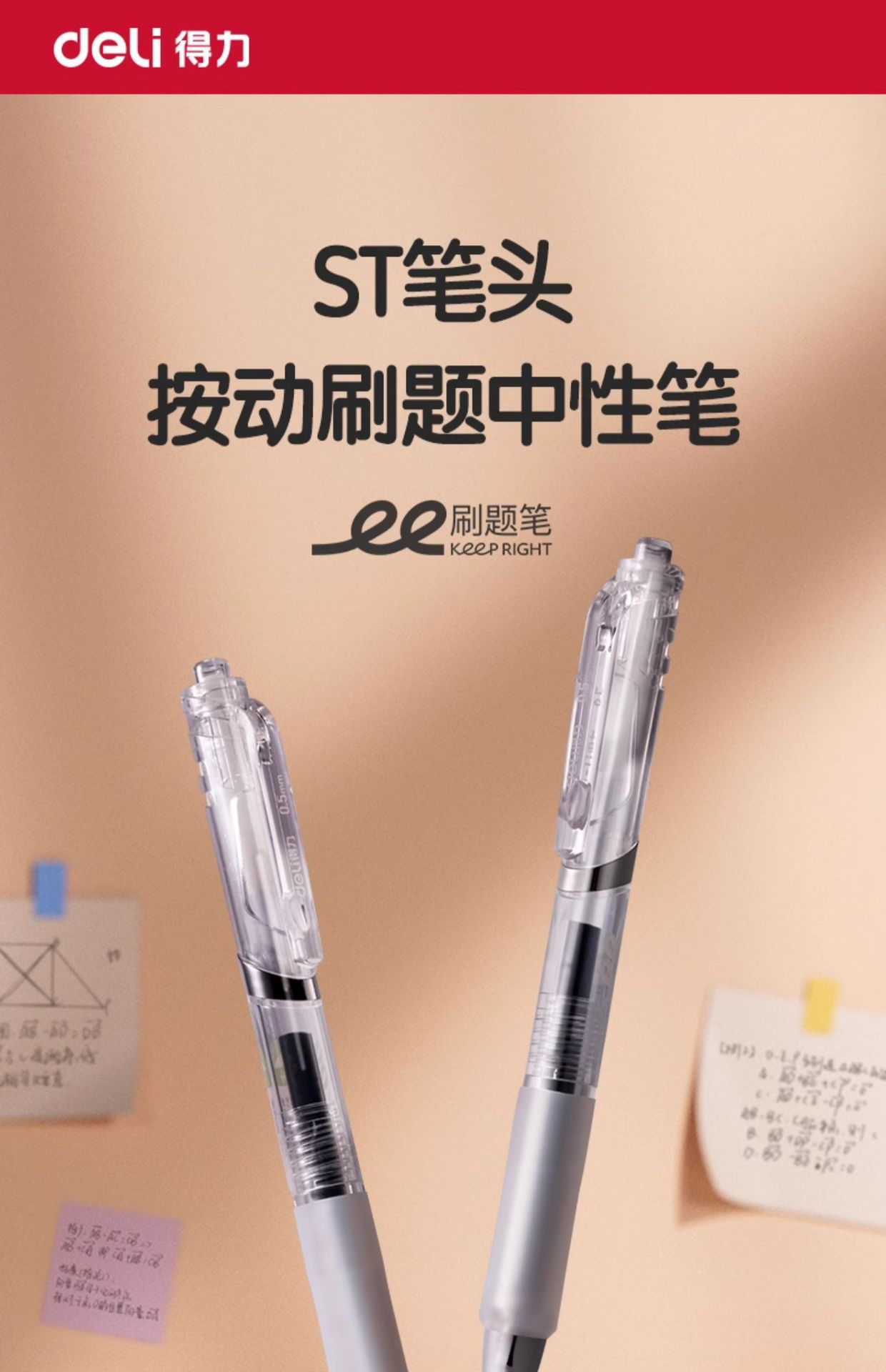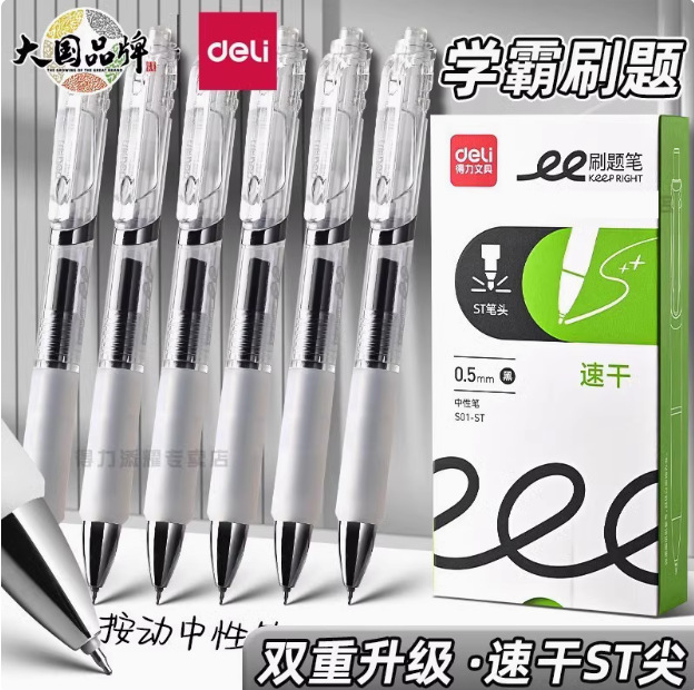델리 프레스 젤 펜 S01-ST 학생 빠른 건조 브러시 펜 높은 색상 값 블랙 0.5mm 사무실 사인 펜