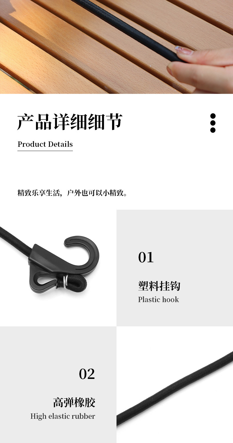 야외 더블 후크 탄성 로프 8mm 두꺼운 탄성 로프 수하물 바인딩 로프 캠퍼 자동차 바인딩 벨트 빨랫줄 플라스틱 후크