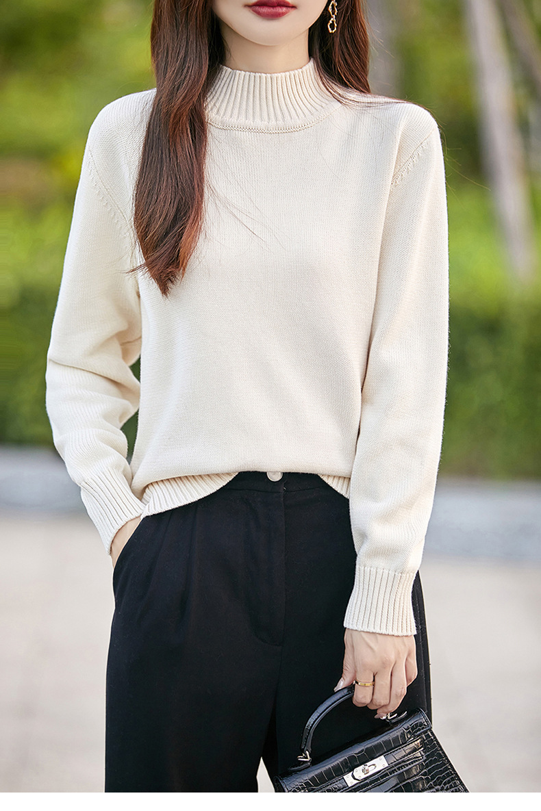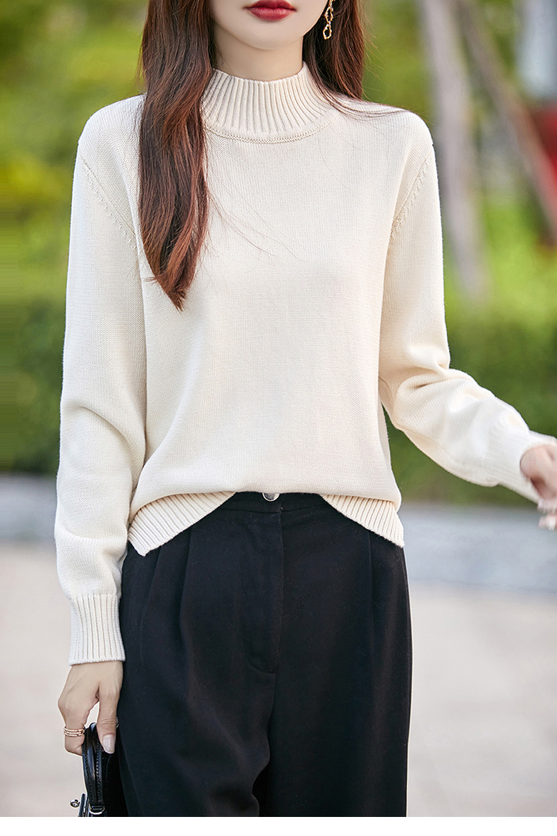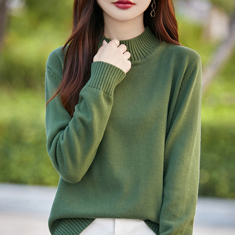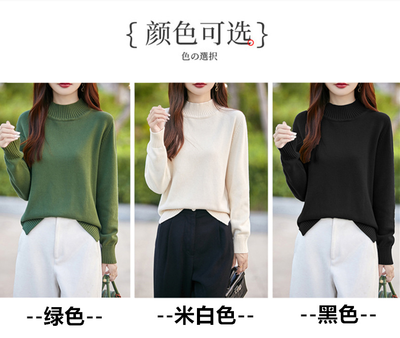 두꺼운 순면 반 높이 칼라 니트 스웨터 여성의 봄과 가을 단색 풀오버 스웨터 게으른 긴팔 베이스 셔츠스토어 가기