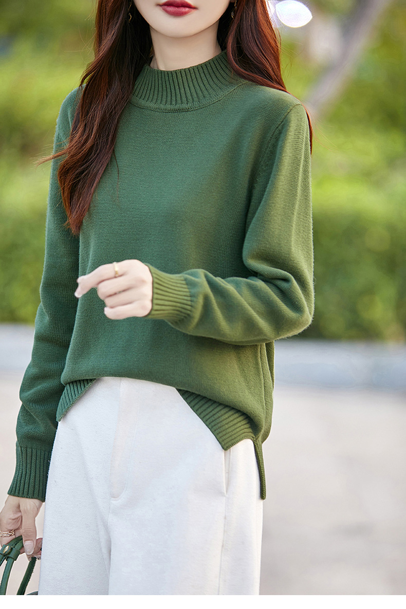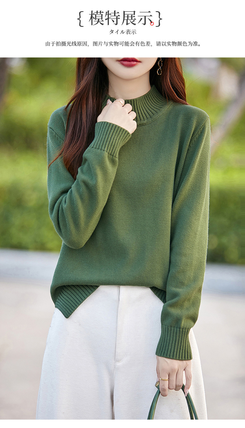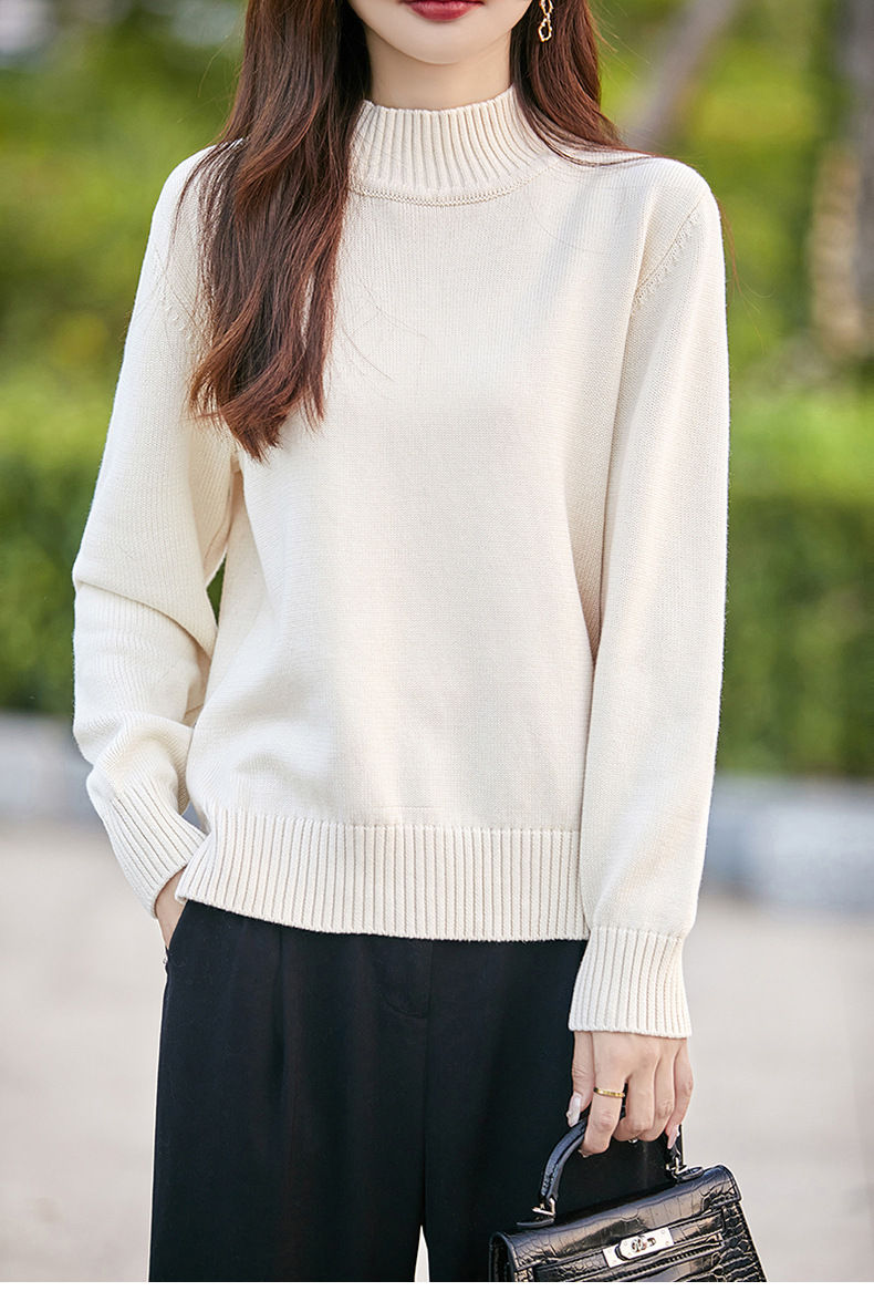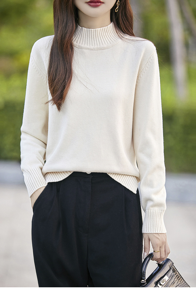 두꺼운 순면 반 높이 칼라 니트 스웨터 여성의 봄과 가을 단색 풀오버 스웨터 게으른 긴팔 베이스 셔츠스토어 가기