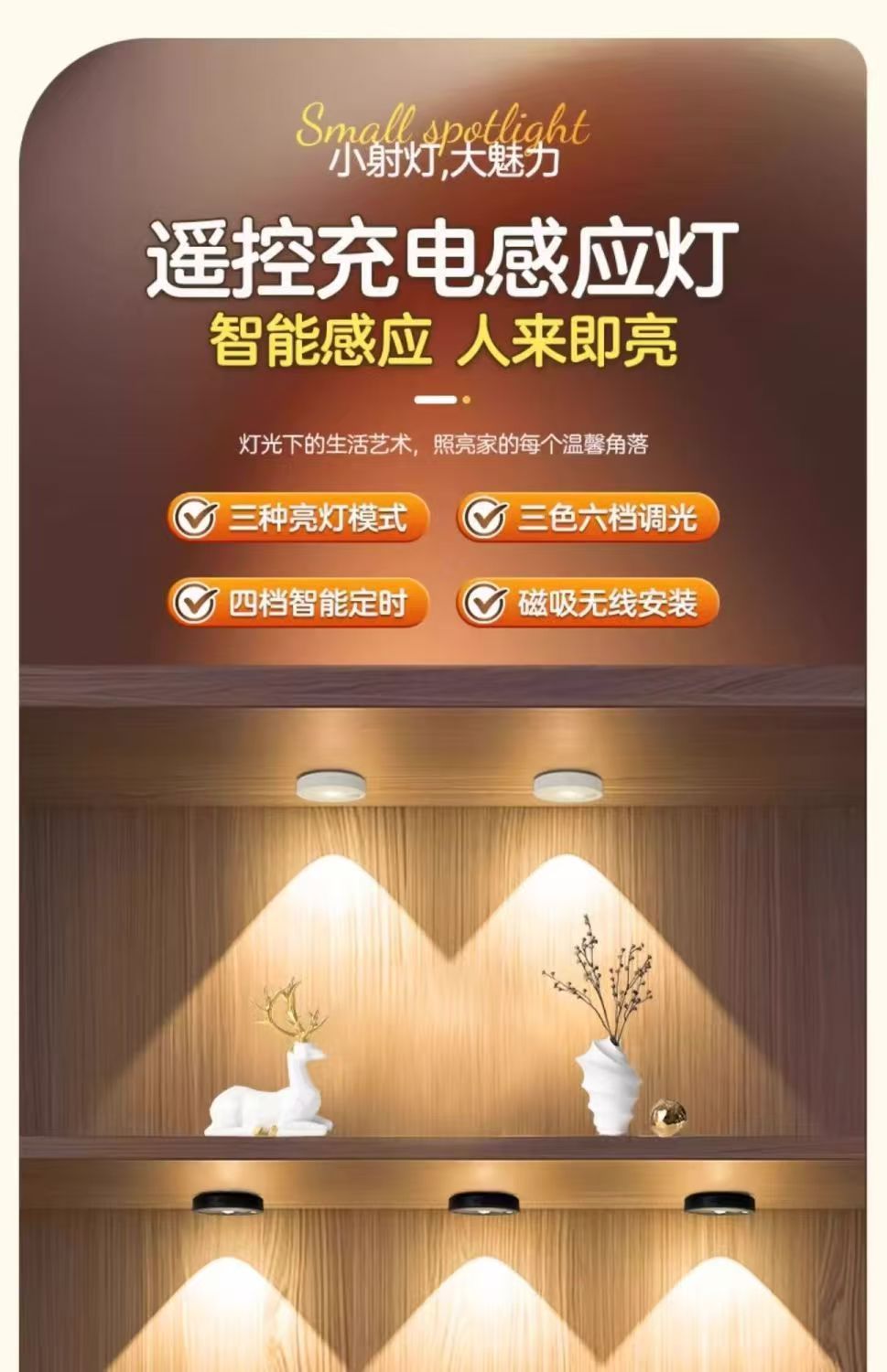 무선 원격 제어 led 충전 스포트라이트 무선 언덕 유도 스포트라이트 와인 캐비닛 유도 램프 언덕 고양이 눈 램프스토어 가기