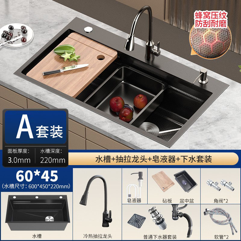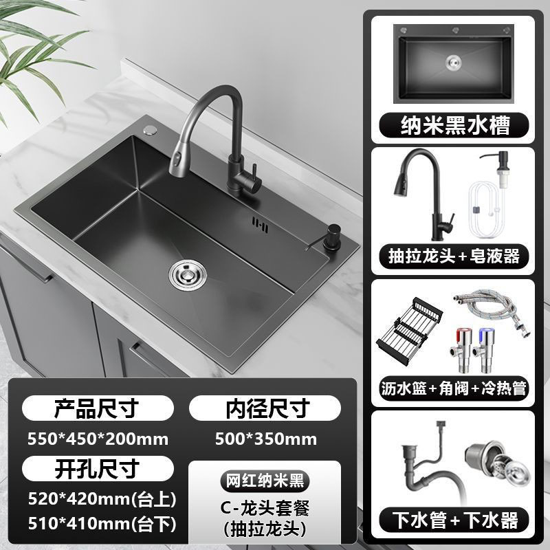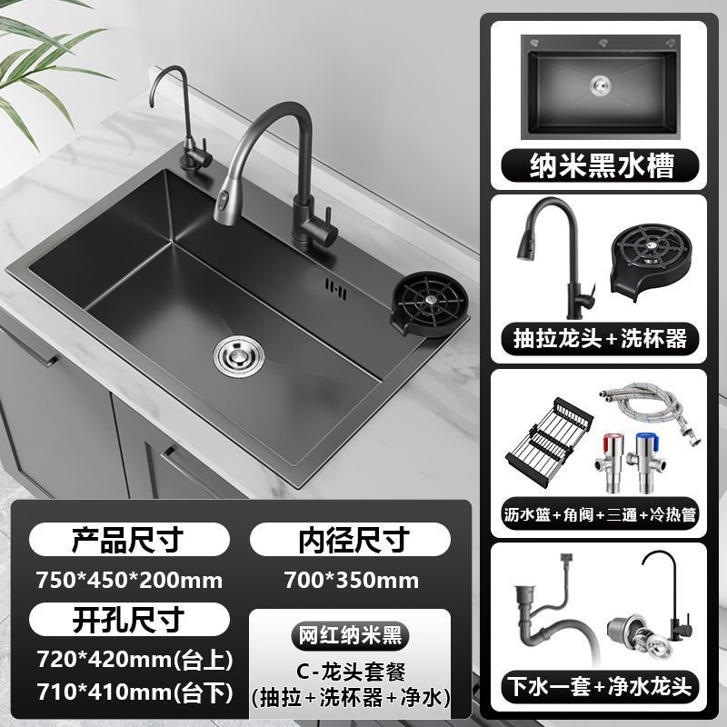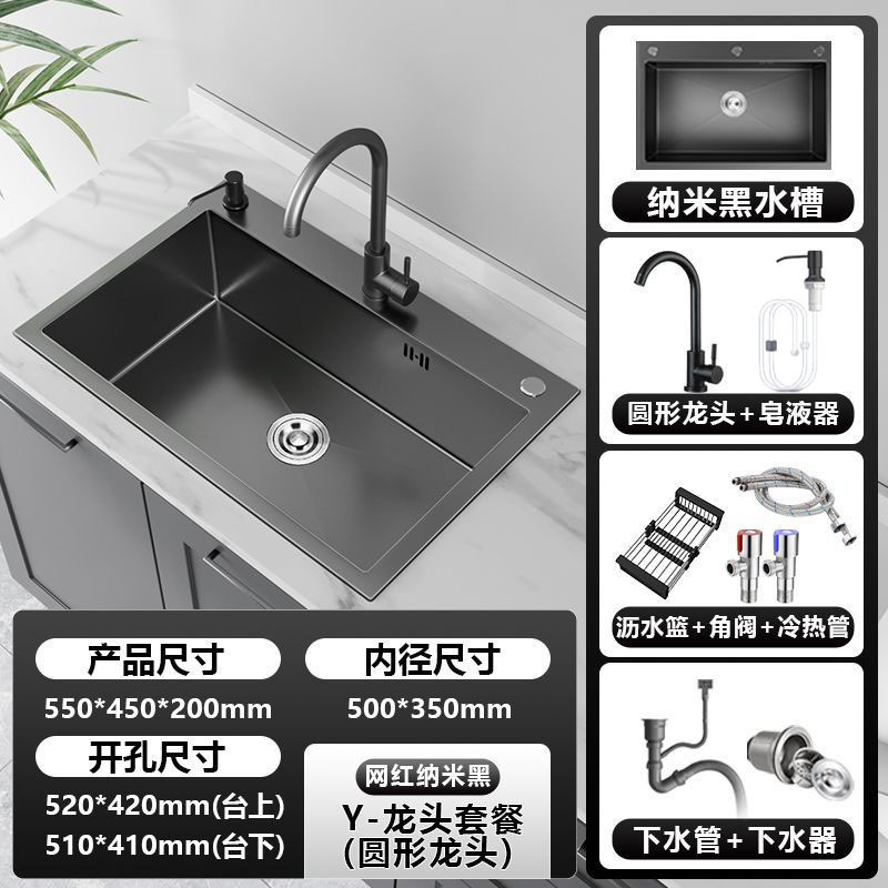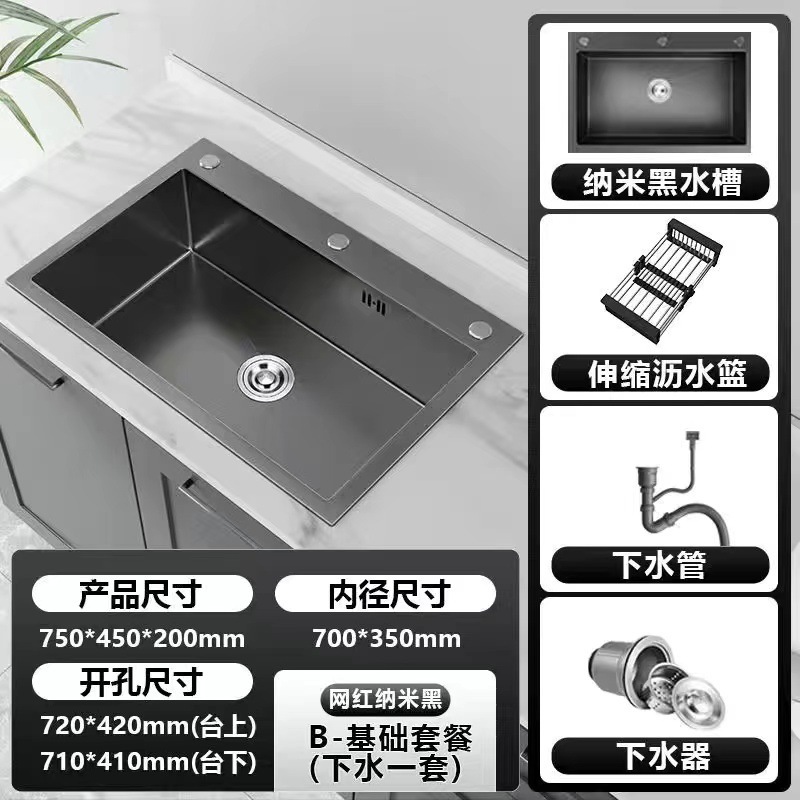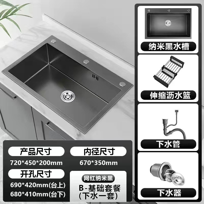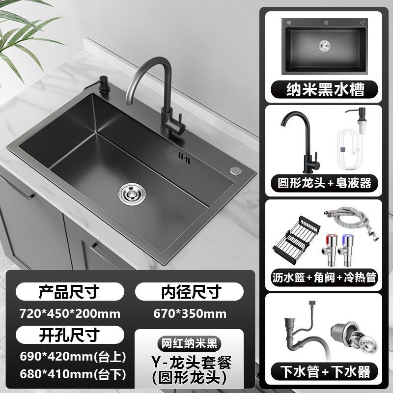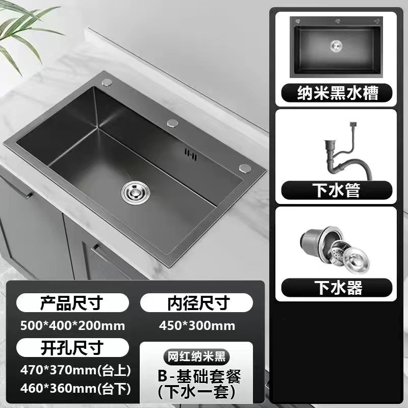 무대 수동 야채 세차 분지 야채 세차 분지 나노 분지 대형 단일 싱크 주방 싱크 스테인레스 스틸 블랙 싱크 없음