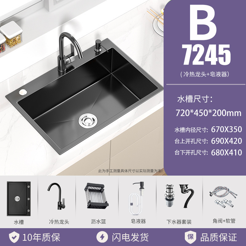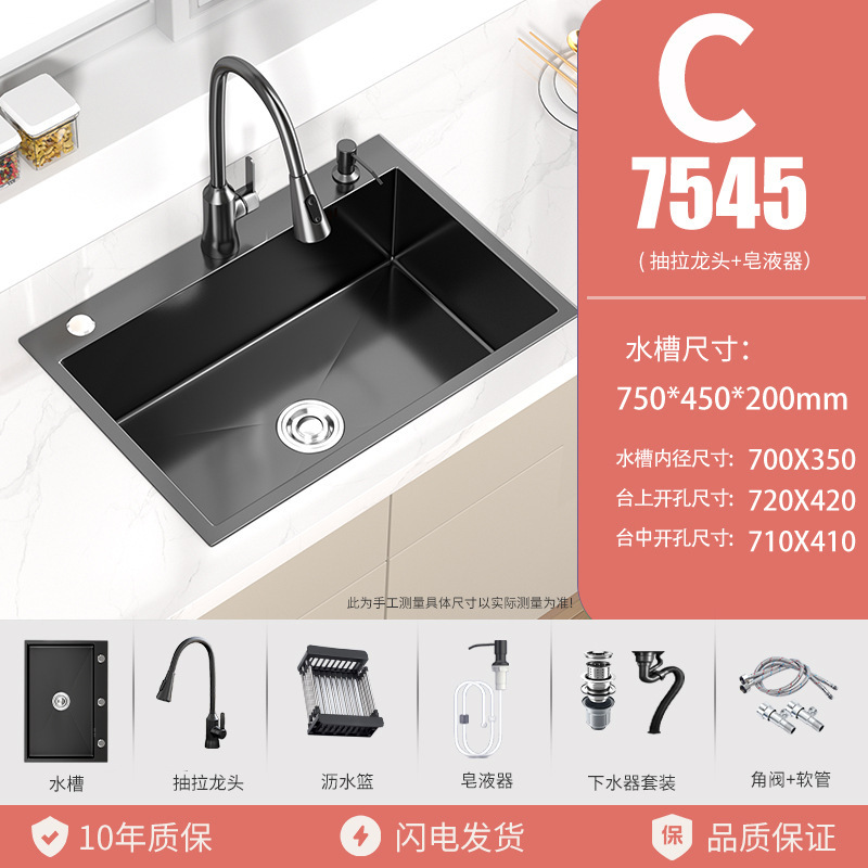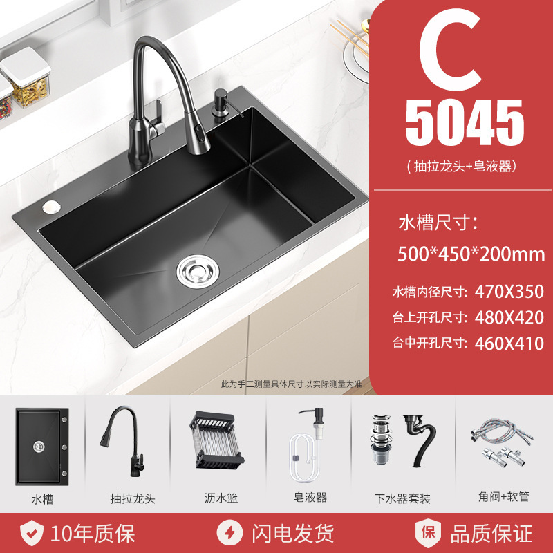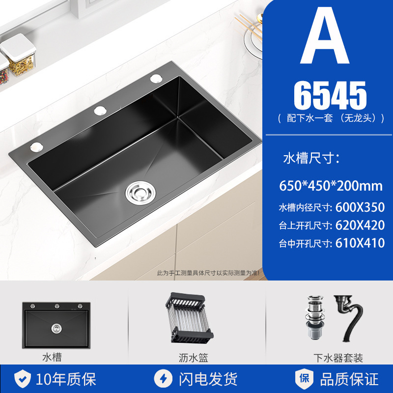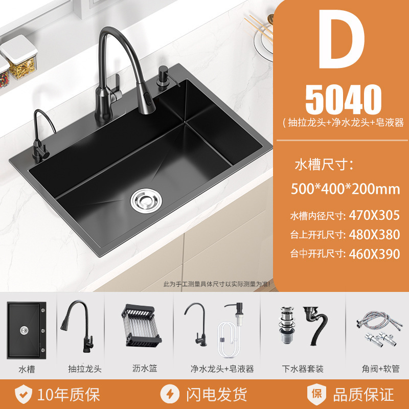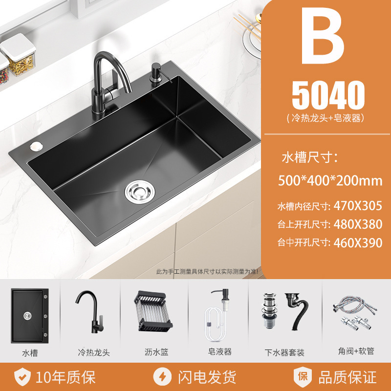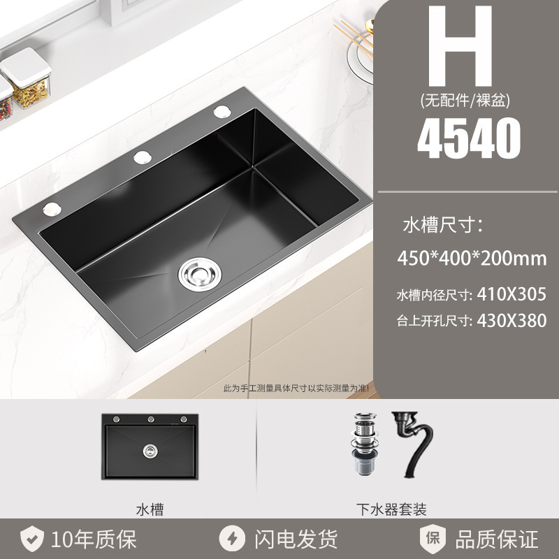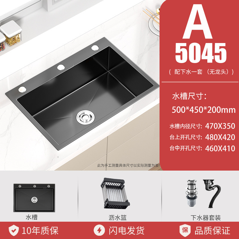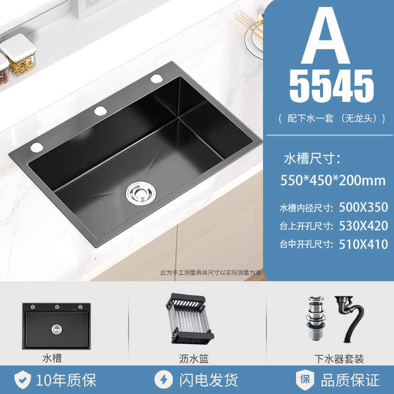 싱크 두꺼운 스테인레스 스틸 수제 주방 싱크 단일 싱크 그릇 및 분지 세척 나노 SUS304 야채 세척 분지 블랙 가구스토어 가기