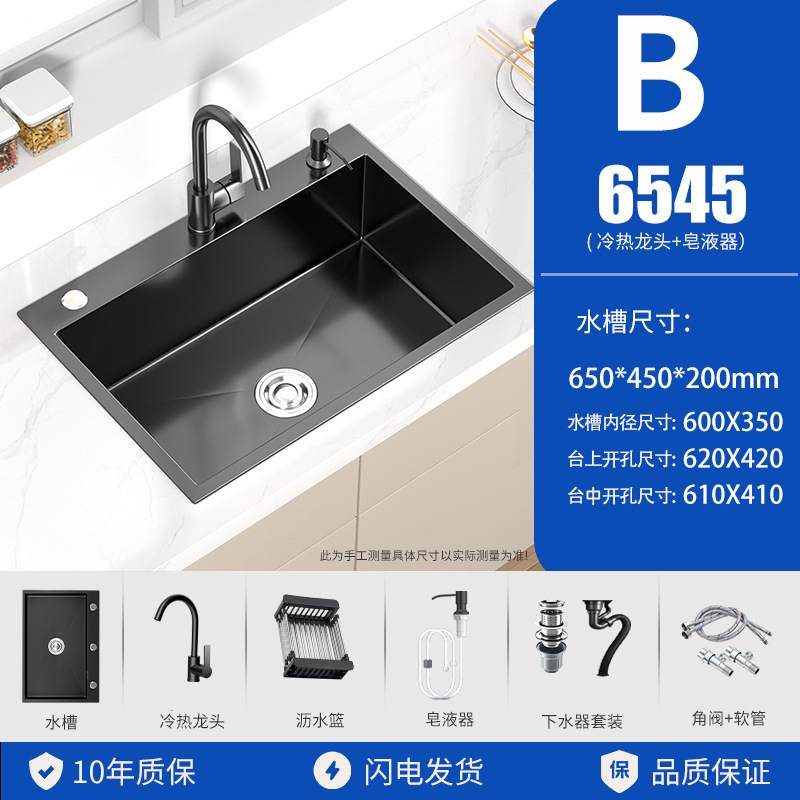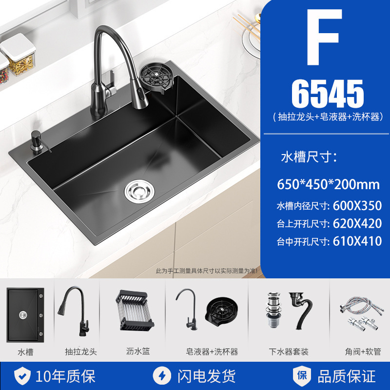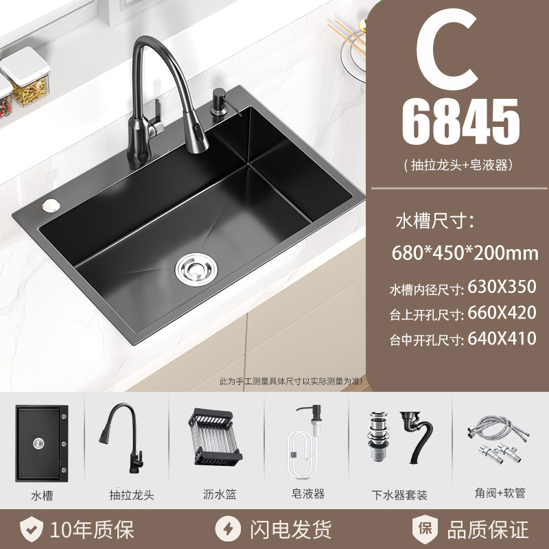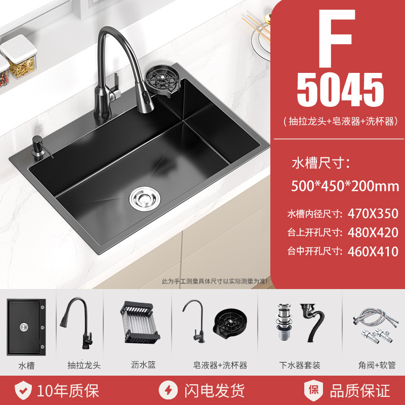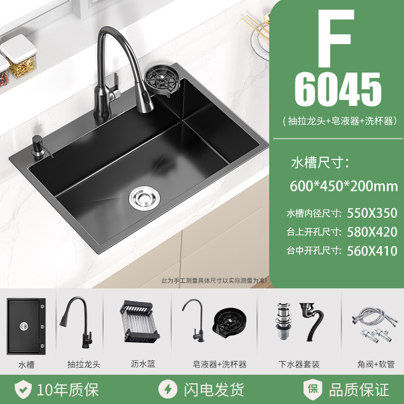 싱크 두꺼운 스테인레스 스틸 수제 주방 싱크 단일 싱크 그릇 및 분지 세척 나노 SUS304 야채 세척 분지 블랙 가구