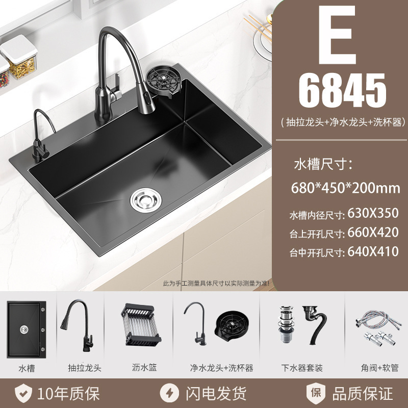 • E 블랙 나노 두꺼워짐(68*45) 풀아웃 수도꼭지 + 비누 디스펜서 + 세척 컵