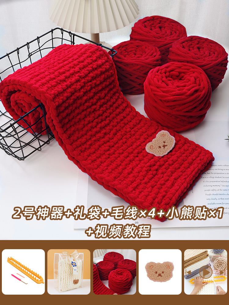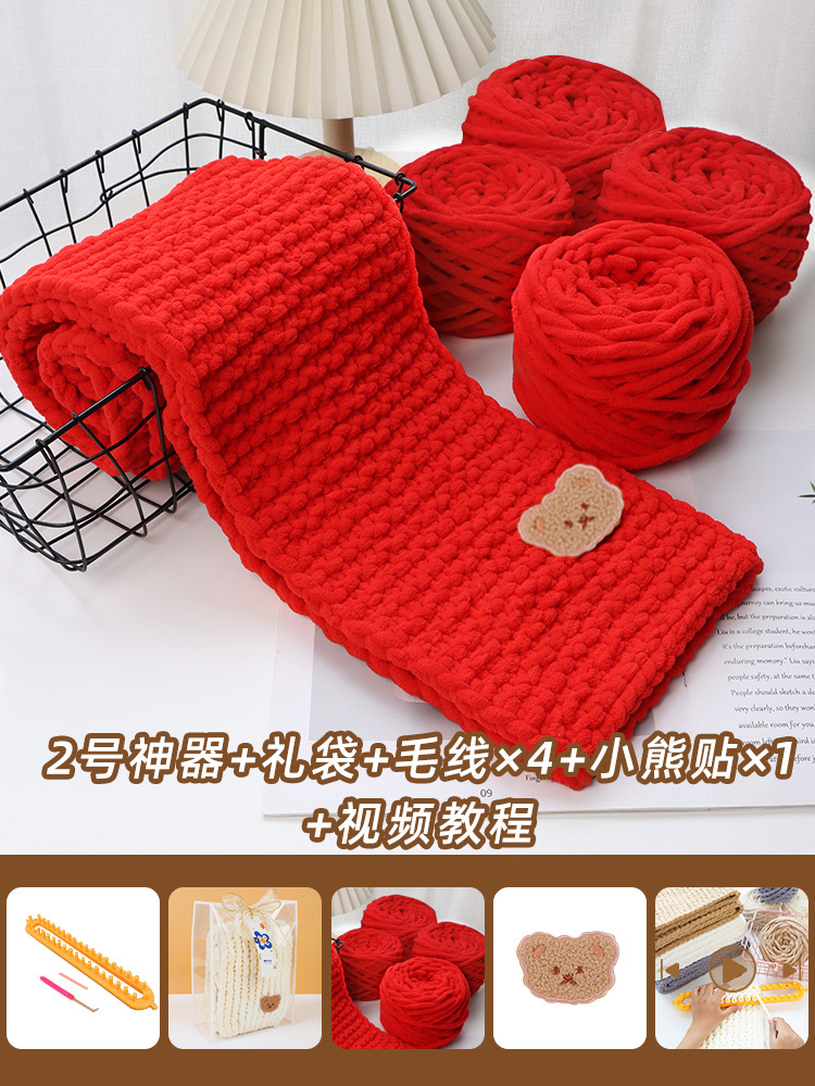 아이스 라인 울 스카프 양모 수제 DIY 레드 후크 아이스 라인 짠 후크 슬리퍼 보이프렌드