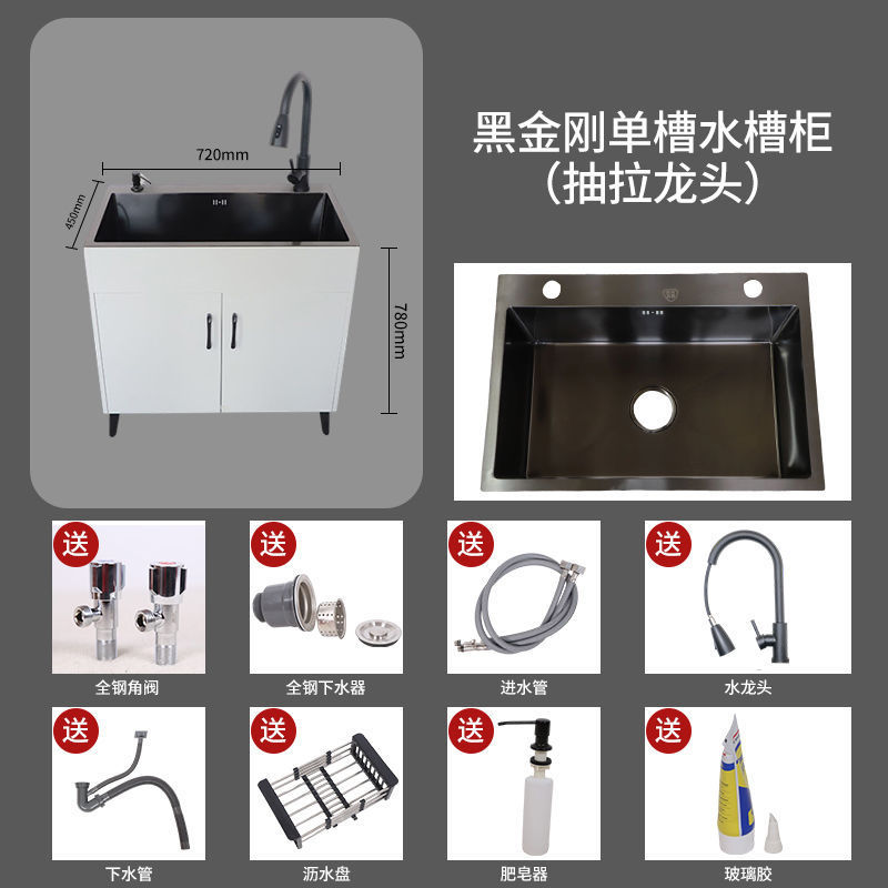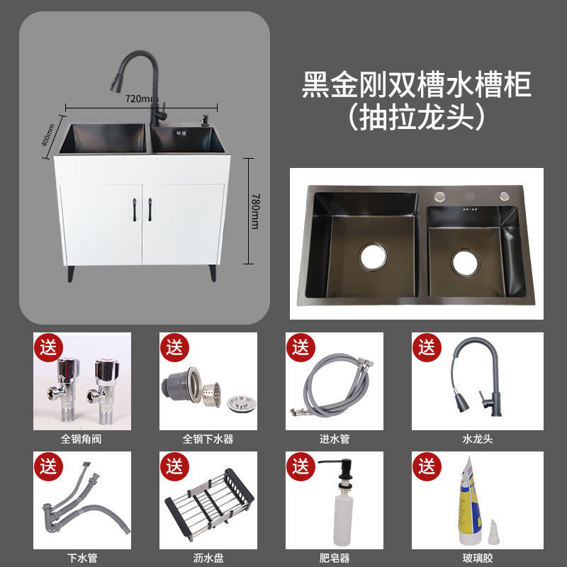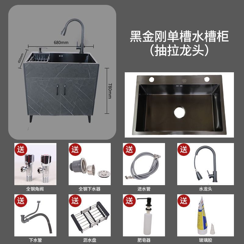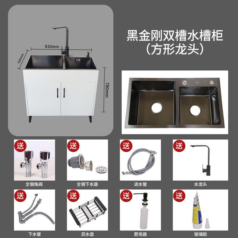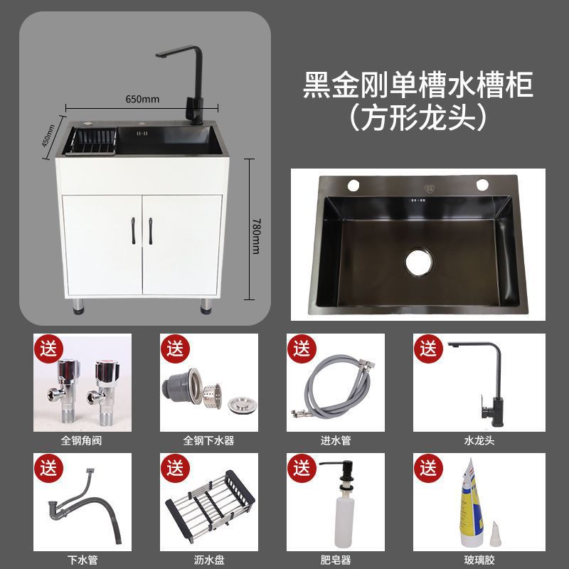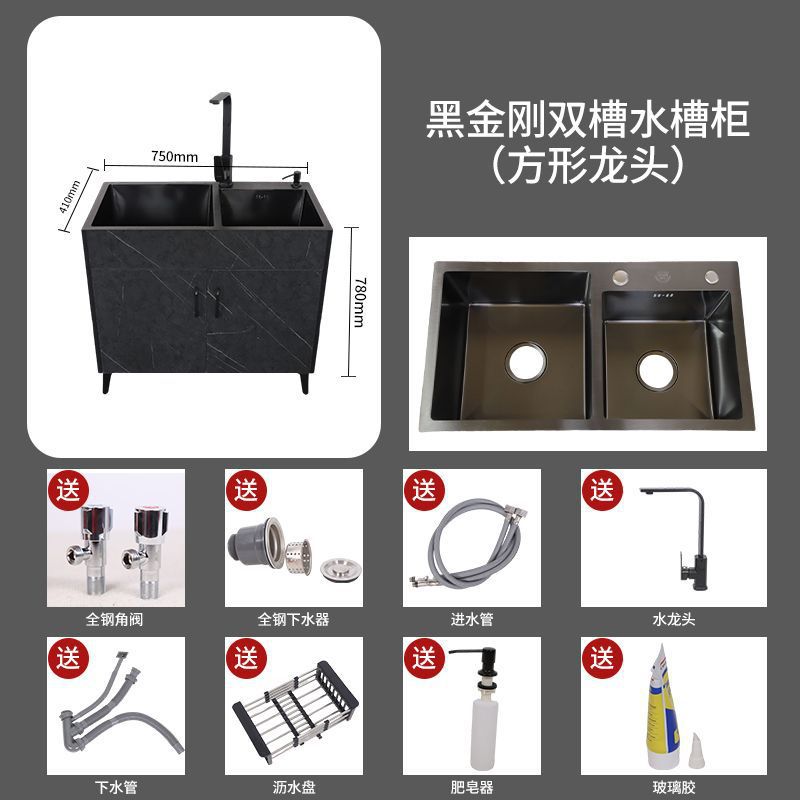 수도꼭지가있는 주방 스테인레스 스틸 야채 세척 분지 가정용 싱크 캐비닛 싱글 및 더블 슬롯 간단한 바닥 캐비닛스토어 가기
