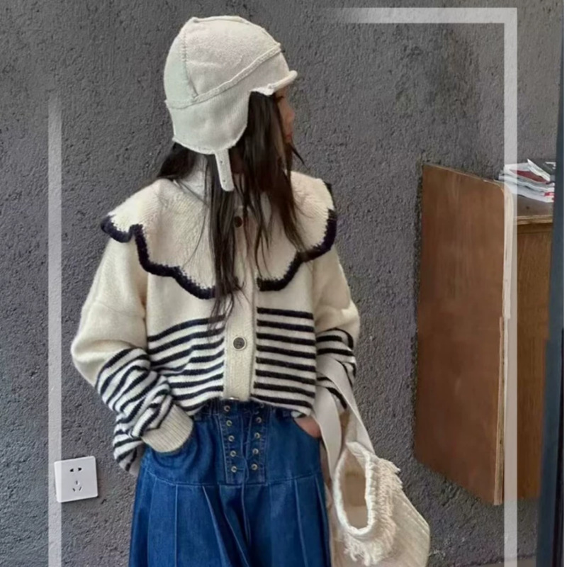 아기 한국 니트 카디건 새로운 느슨한 게으른 탑 니트 달콤한 소녀 Ruffled 인형 칼라 아기 소녀 외부스토어 가기