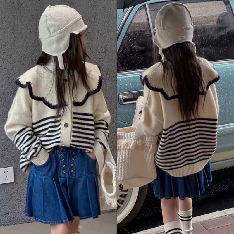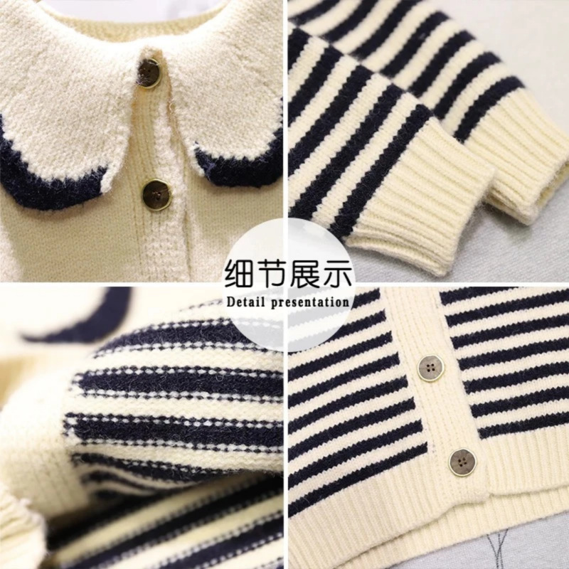 아기 한국 니트 카디건 새로운 느슨한 게으른 탑 니트 달콤한 소녀 Ruffled 인형 칼라 아기 소녀 외부