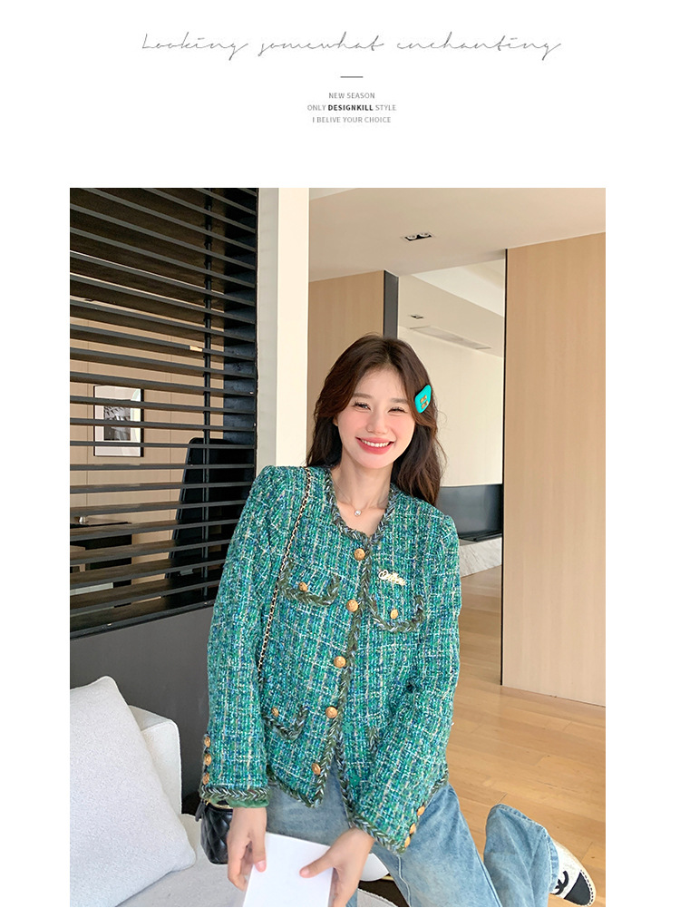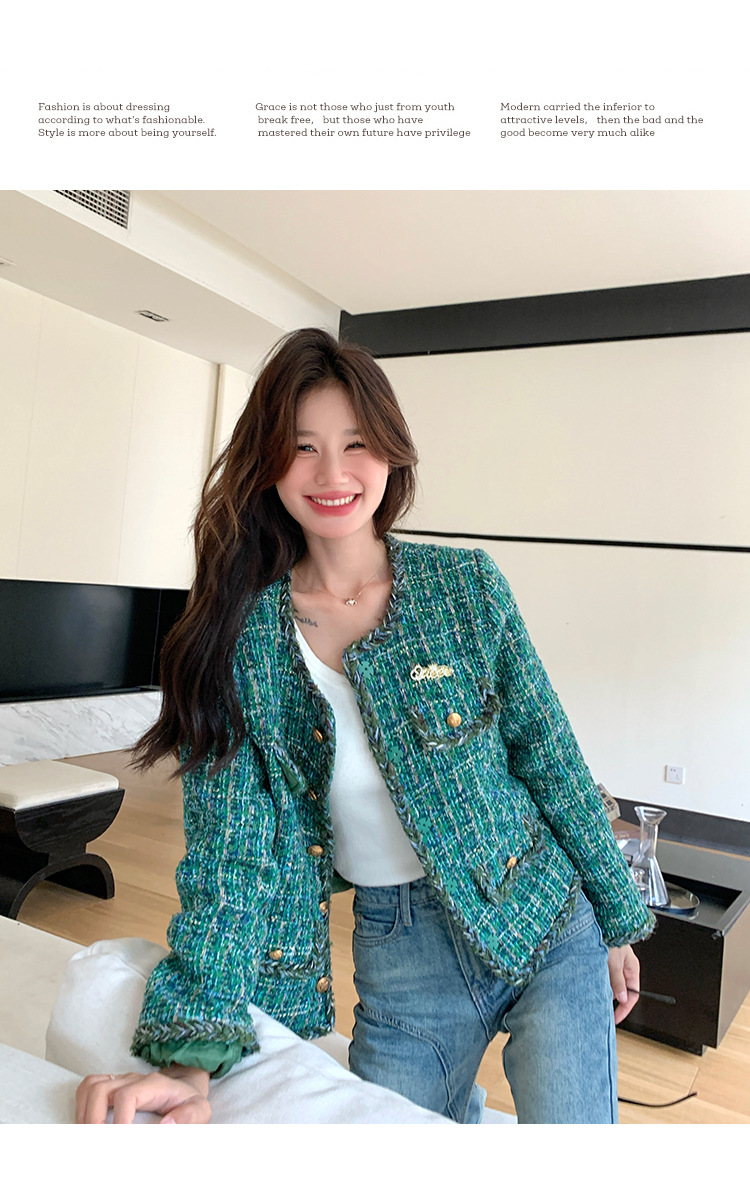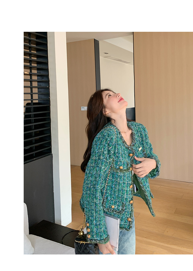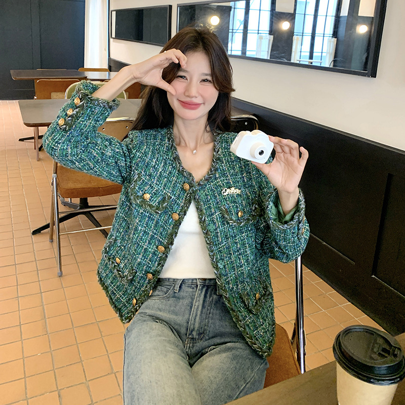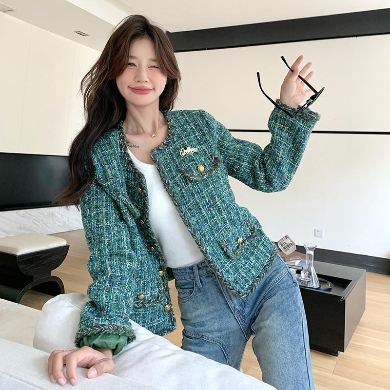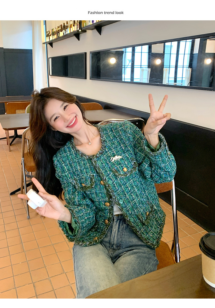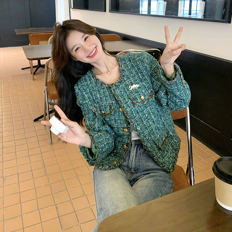 [멩메이] 25 봄 마이파 한국 통근 고감도 연예인 바람 그린 트위드 작은 향기로운 바람 짧은 코트 여성스토어 가기