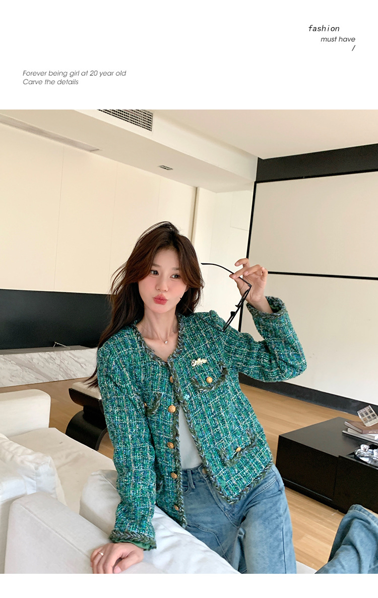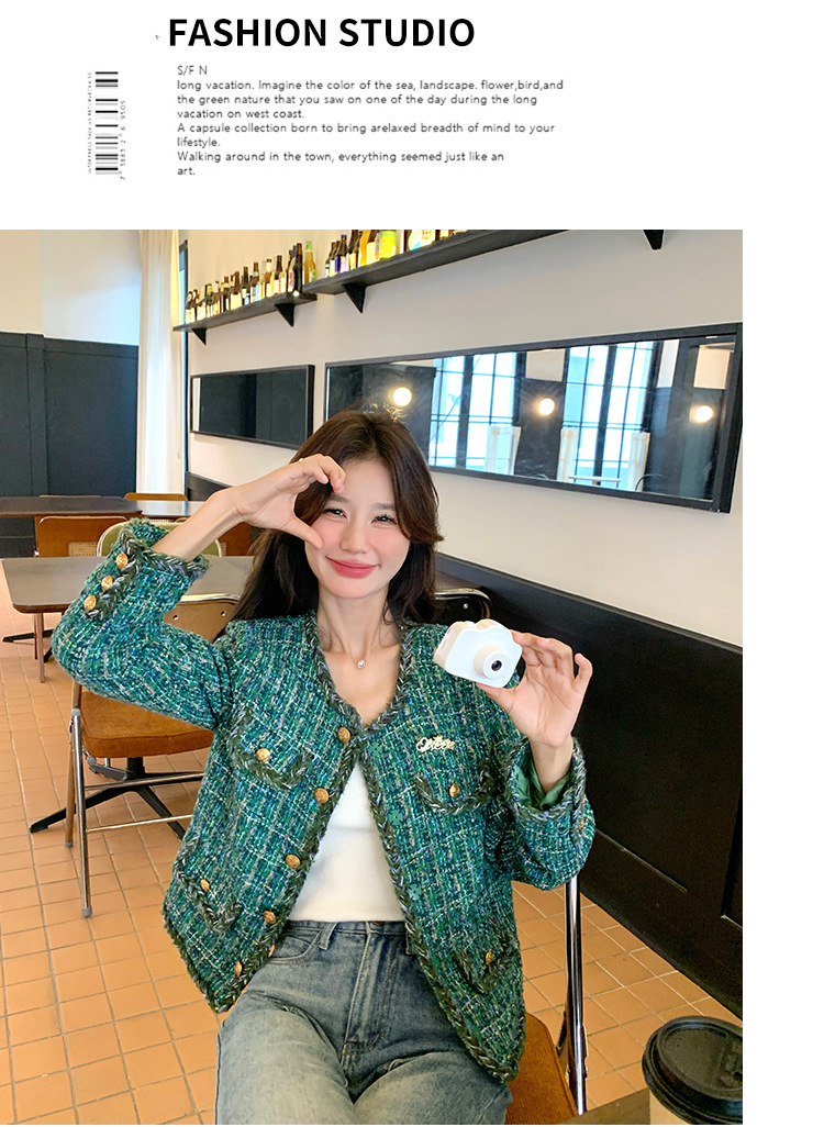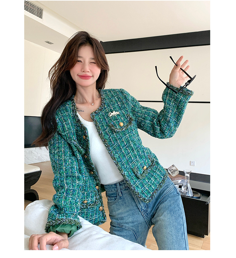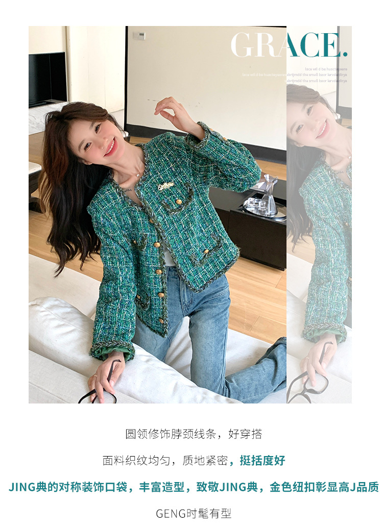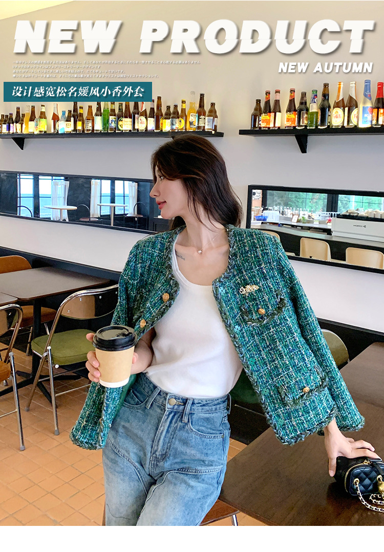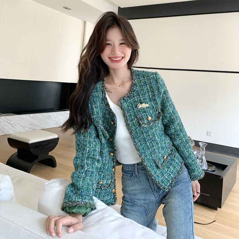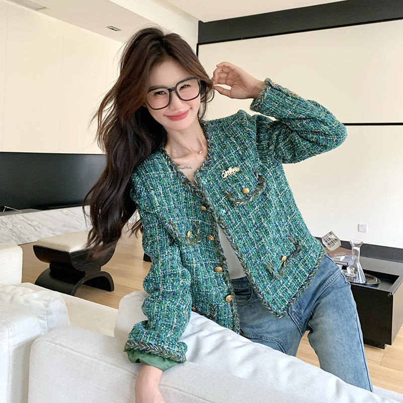 [멩메이] 25 봄 마이파 한국 통근 고감도 연예인 바람 그린 트위드 작은 향기로운 바람 짧은 코트 여성스토어 가기