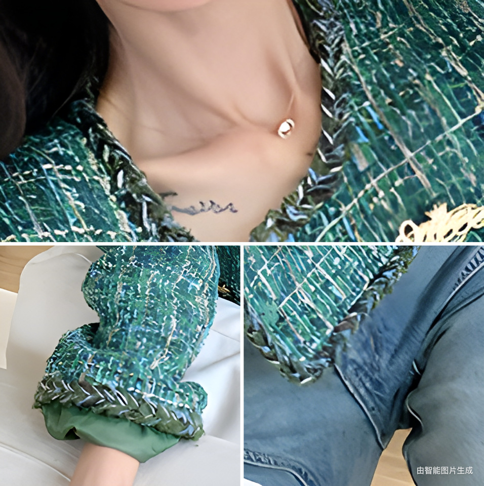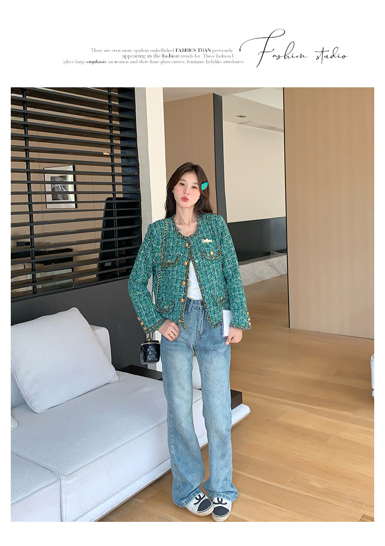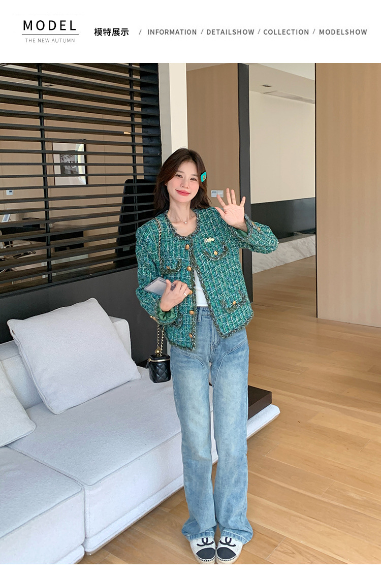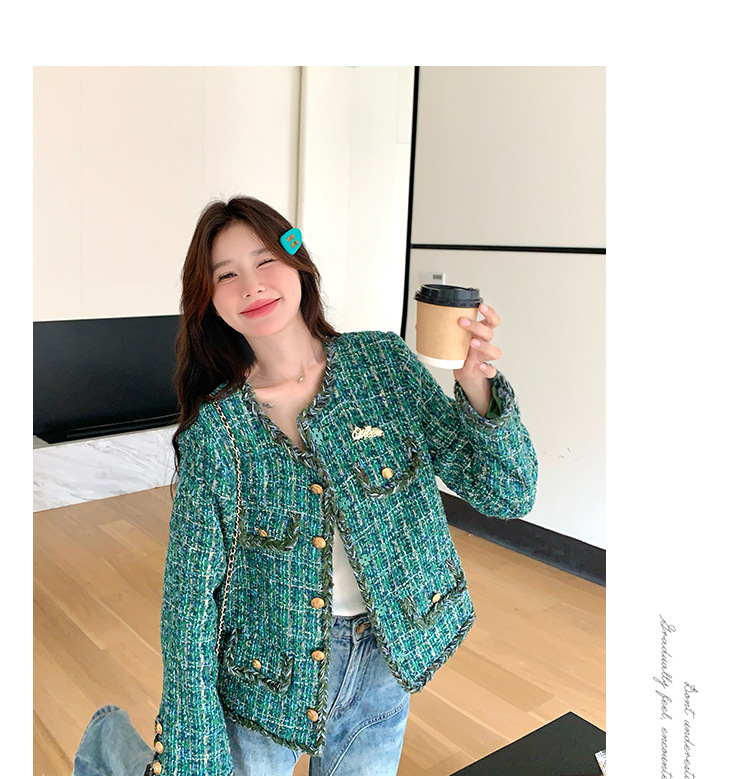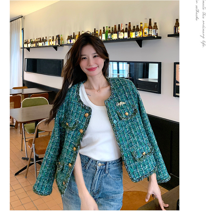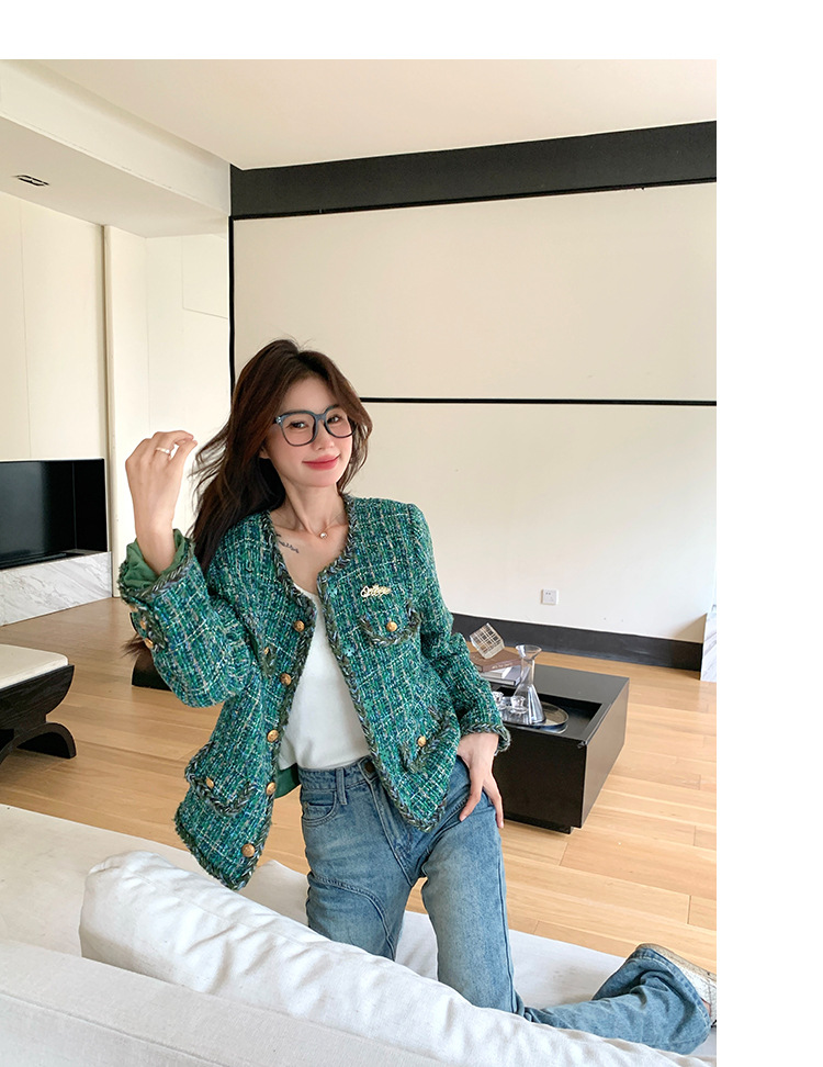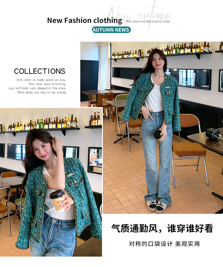 [멩메이] 25 봄 마이파 한국 통근 고감도 연예인 바람 그린 트위드 작은 향기로운 바람 짧은 코트 여성스토어 가기
