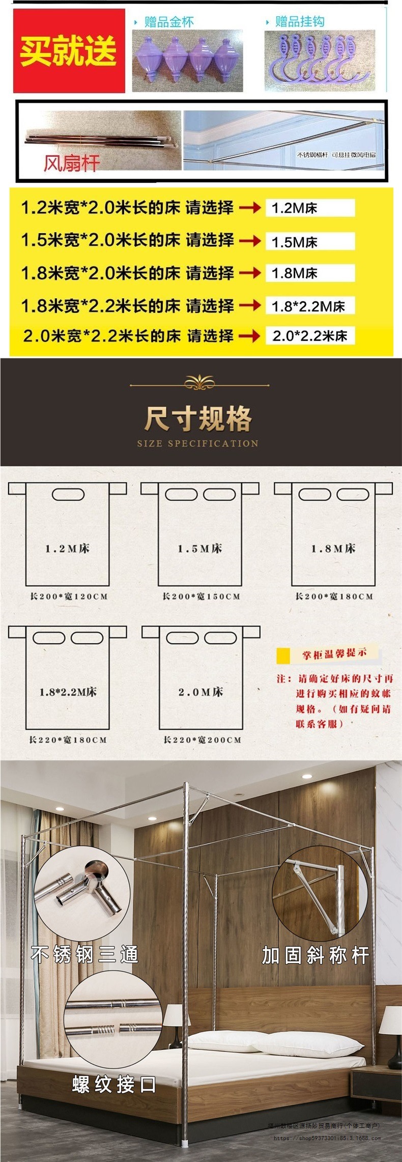 스테인레스 스틸 모기장 브래킷 1.5 미터 1.8 미터 침대 폴 액세서리 1.0 미터 세트 두꺼운 티스토어 가기