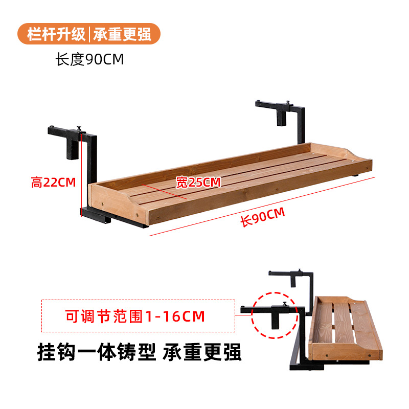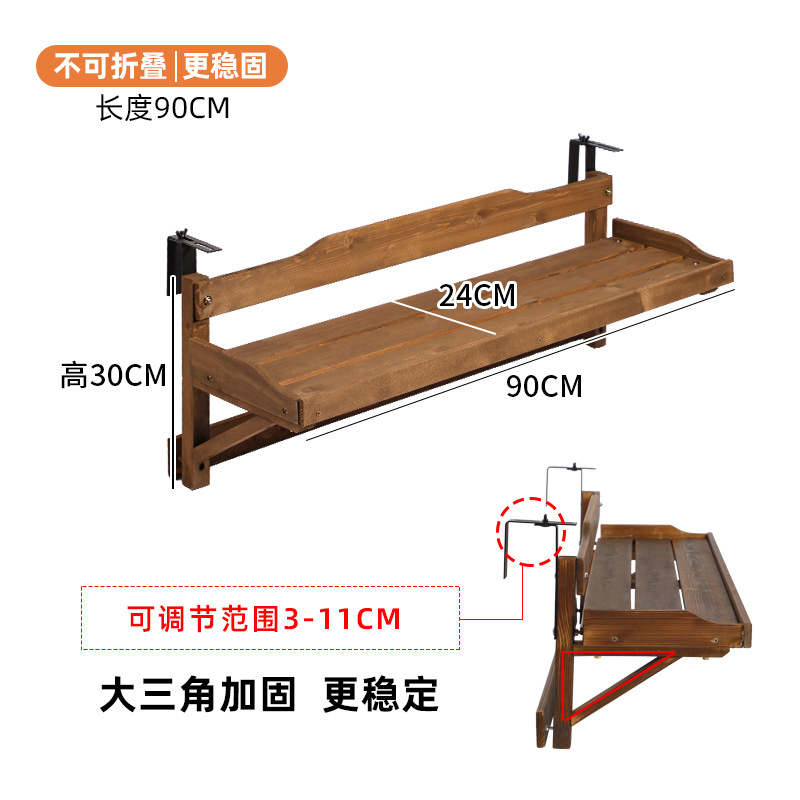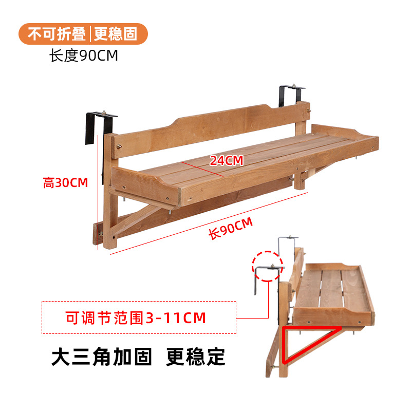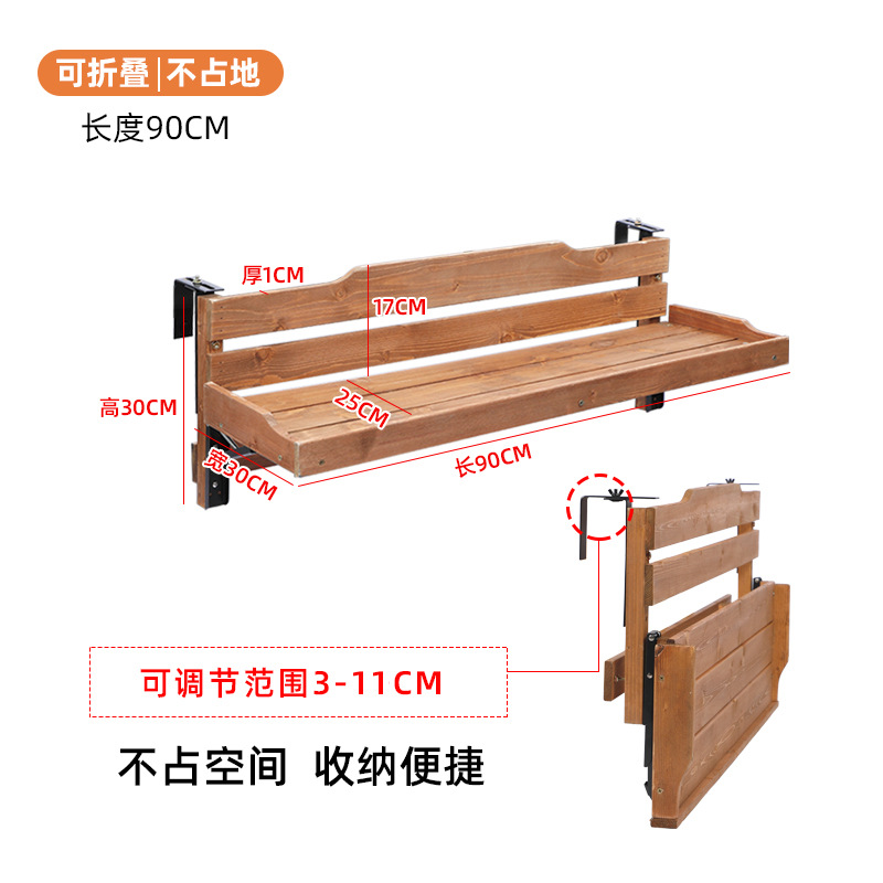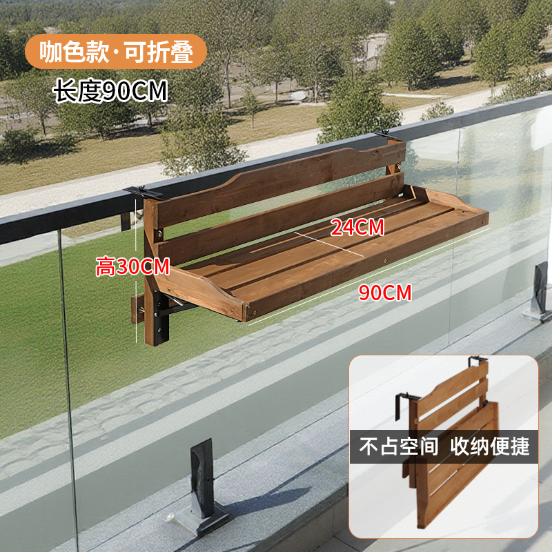 • 브라운 색상 [접이식 불가]|길이 90CM] 내하중 25kg (난간 폭 11CM 이내에 걸 수 있음)