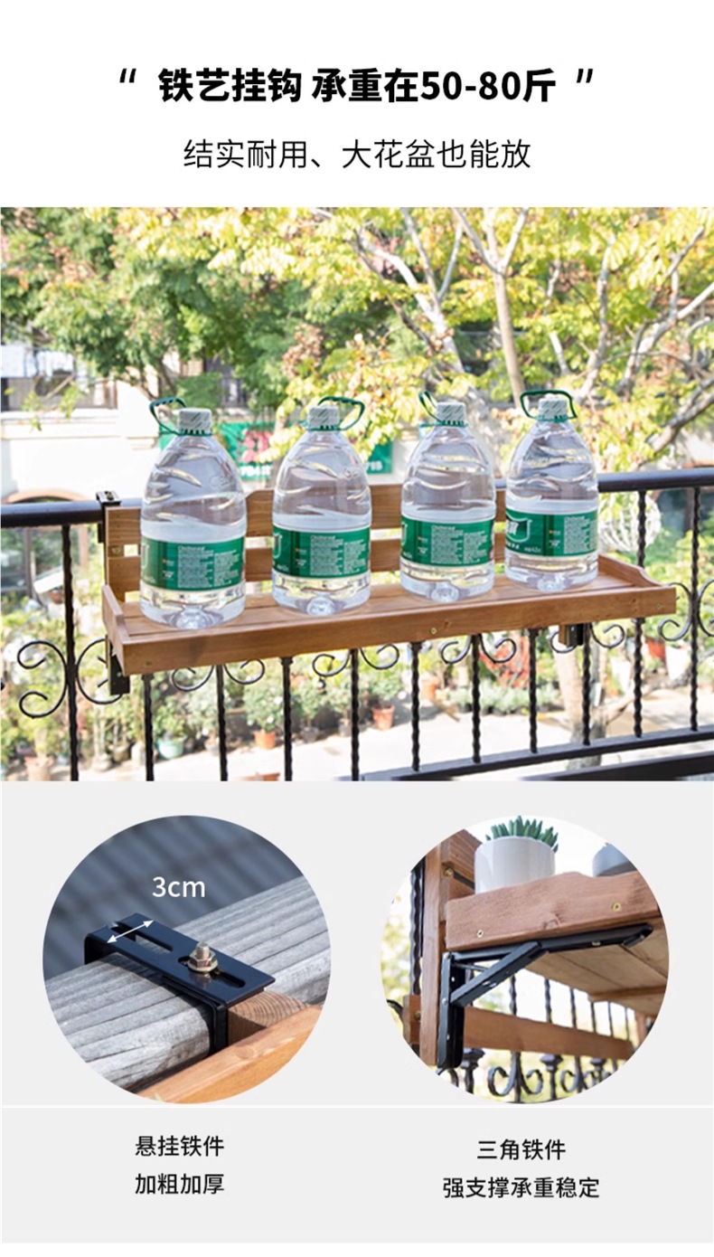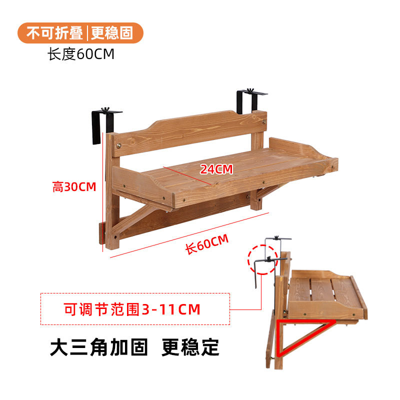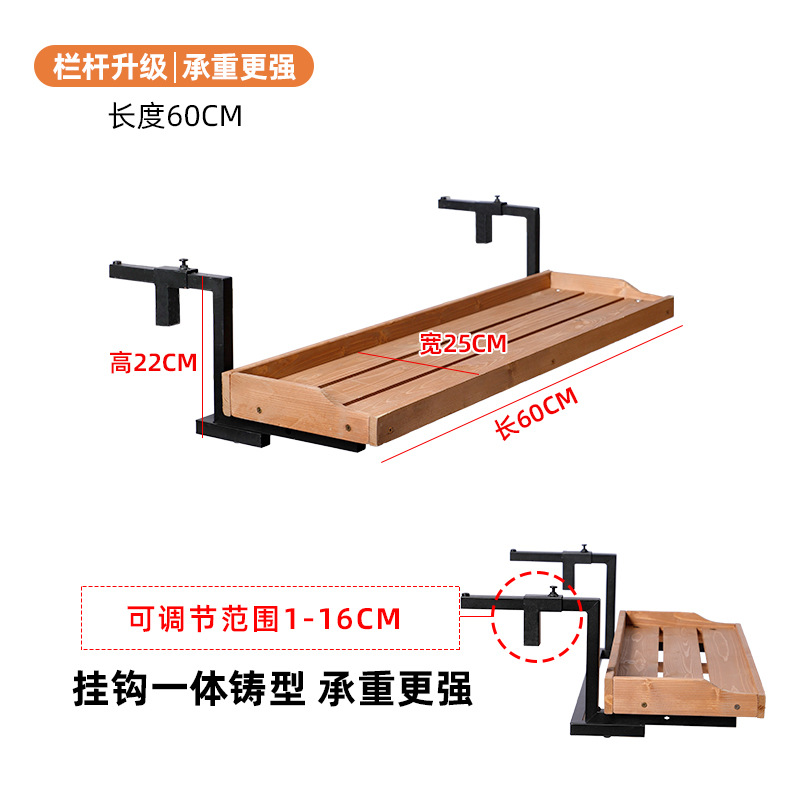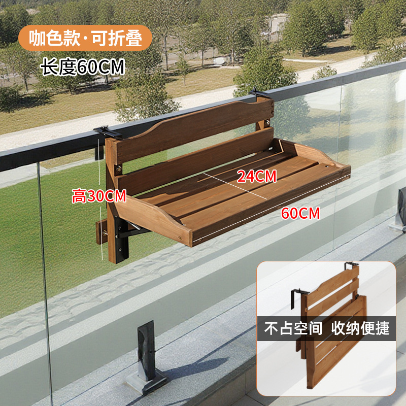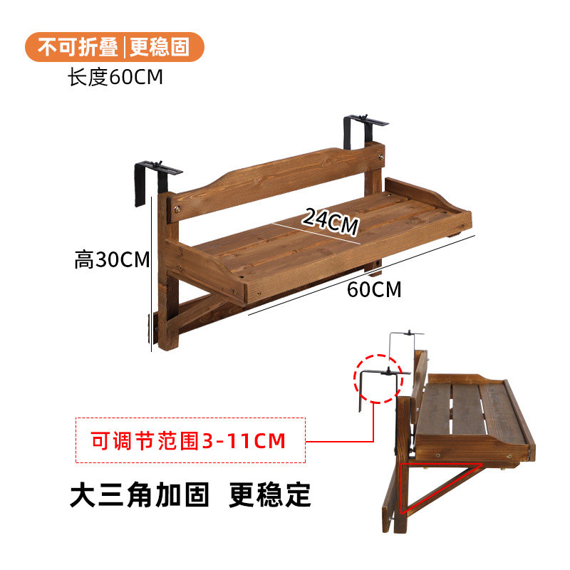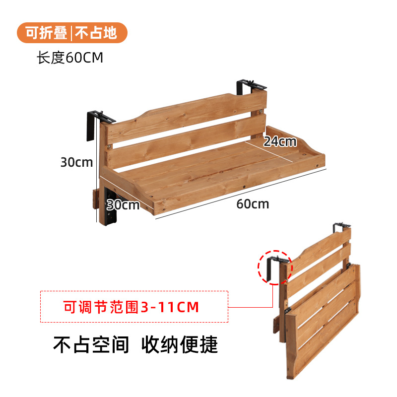 • 브라운 색상 [접이식 불가]|길이 60CM] 내하중 25kg (난간 폭 11CM 이내에 걸 수 있음)