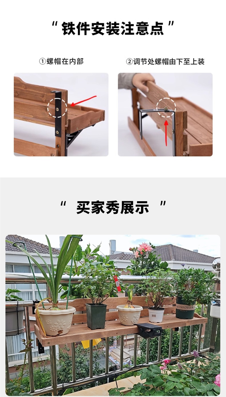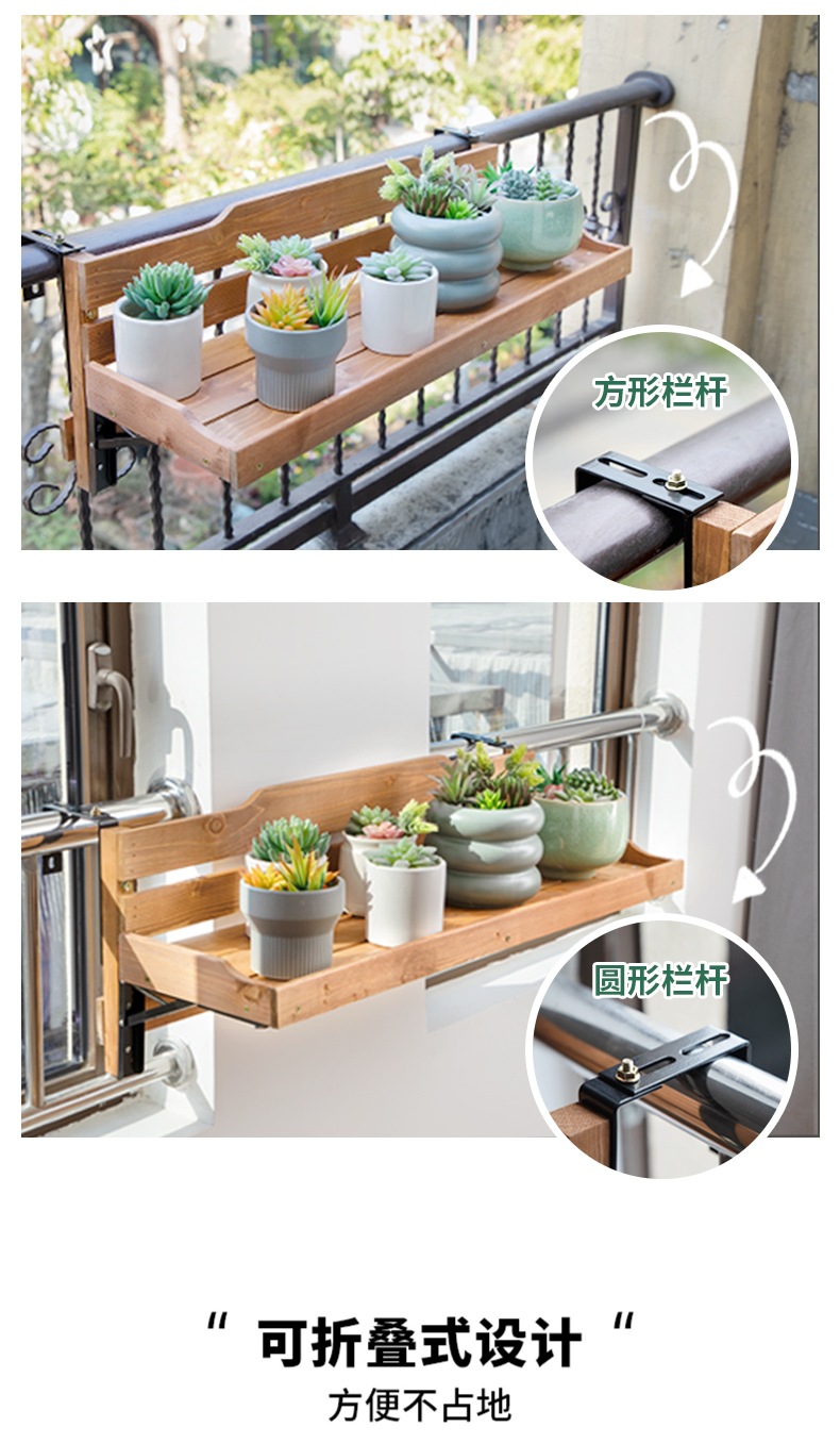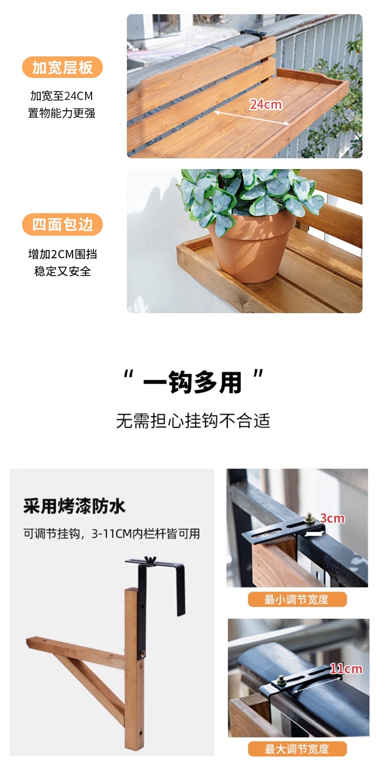 • 브라운 색상 [접이식 불가]|길이 60CM] 내하중 25kg (난간 폭 11CM 이내에 걸 수 있음)