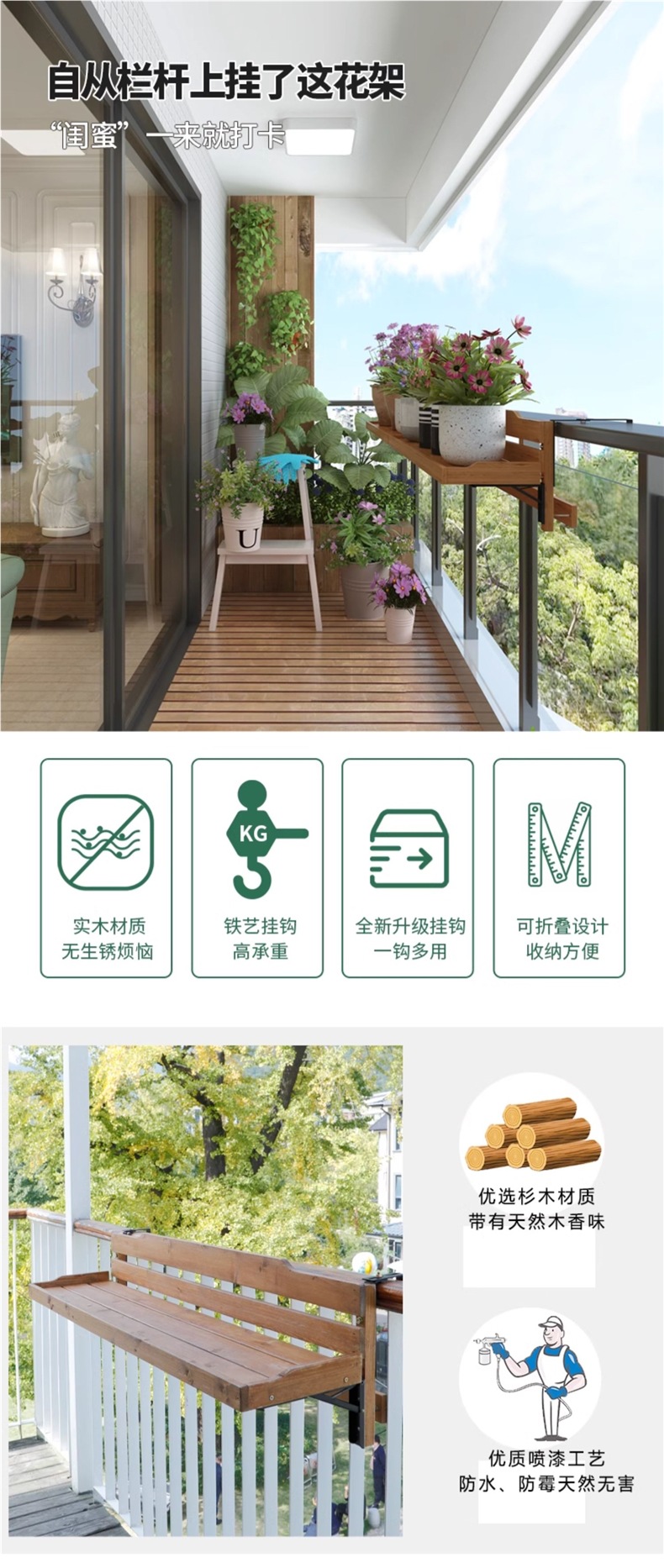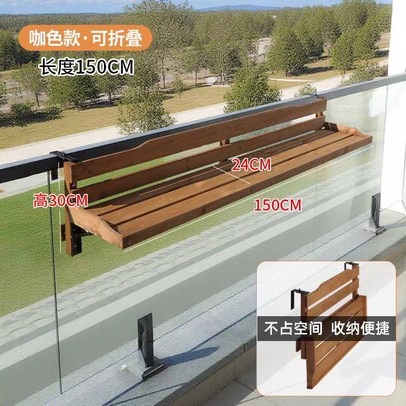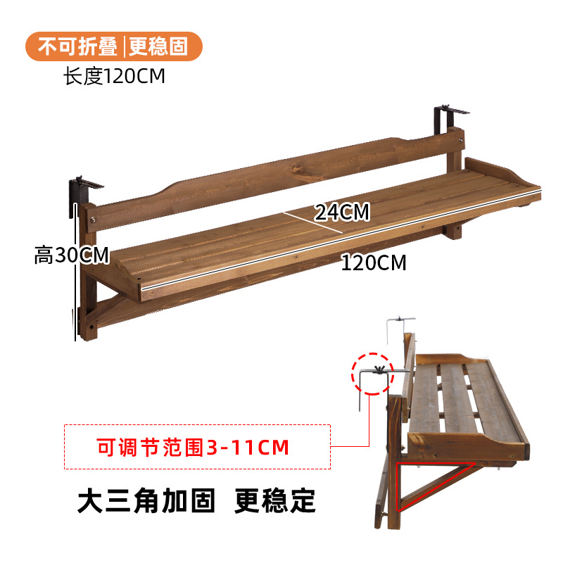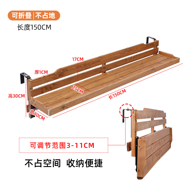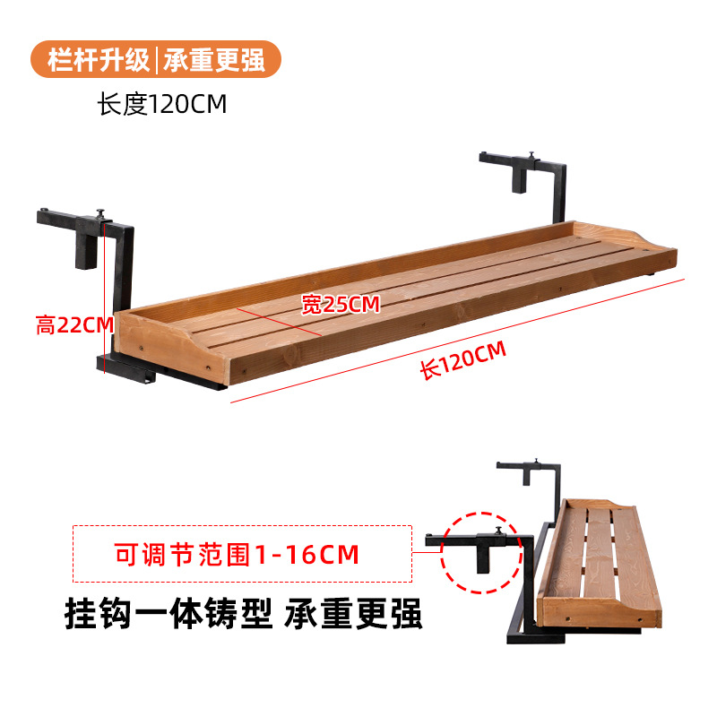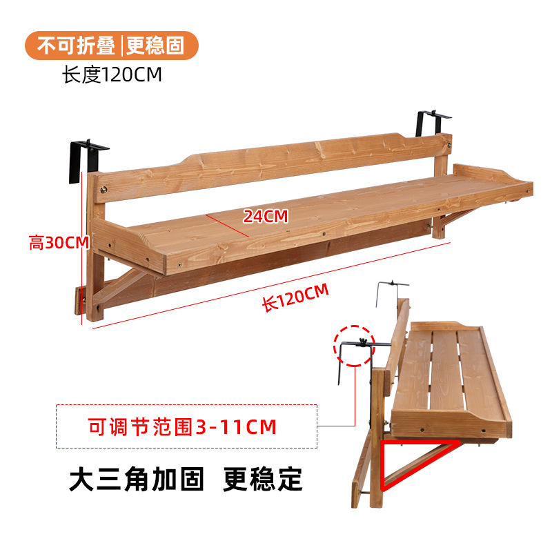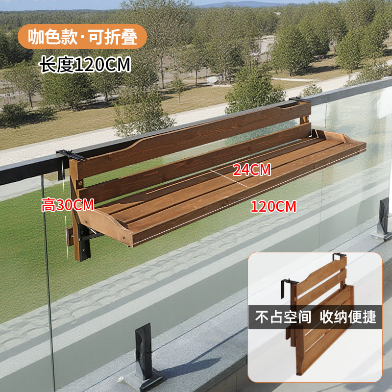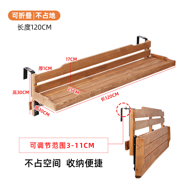 • 브라운 색상 [접이식 불가]|길이 120CM] 내하중 25kg (난간 폭 11CM 이내에 걸 수 있음)