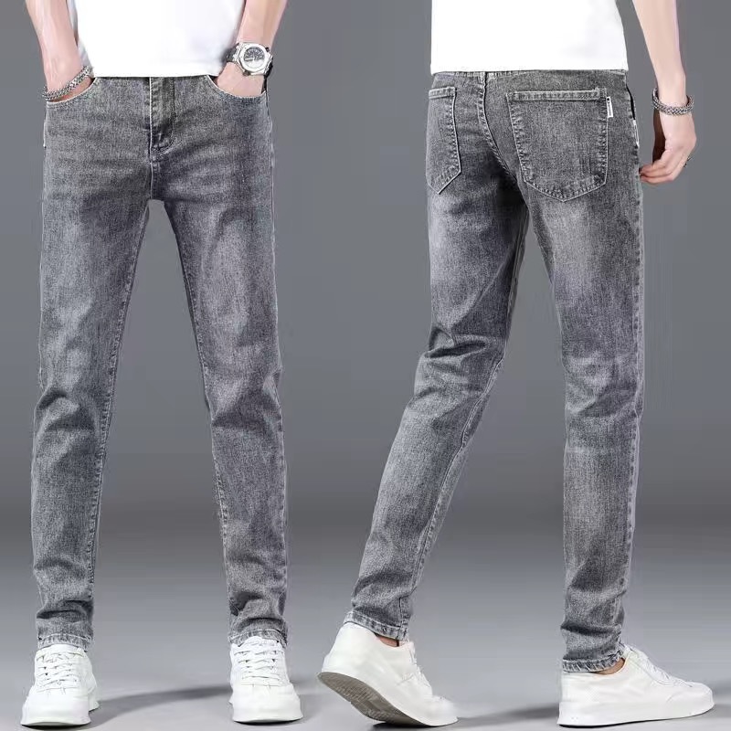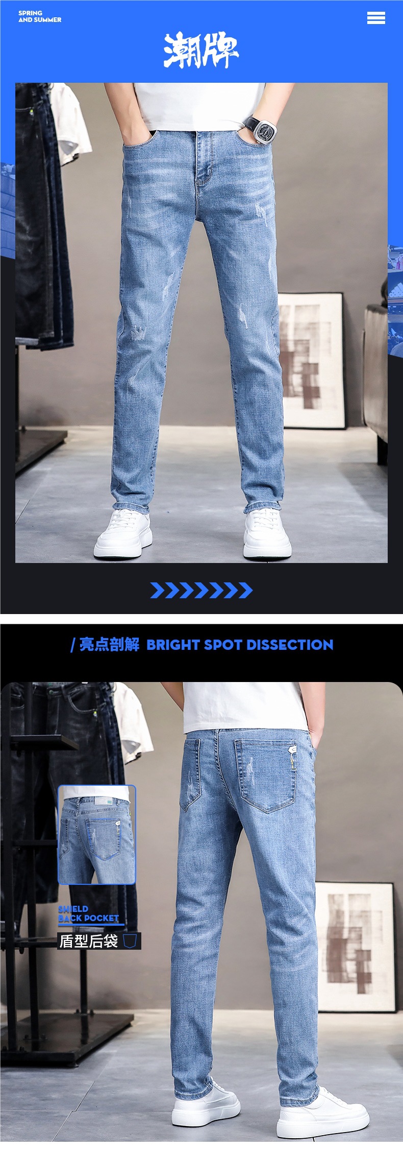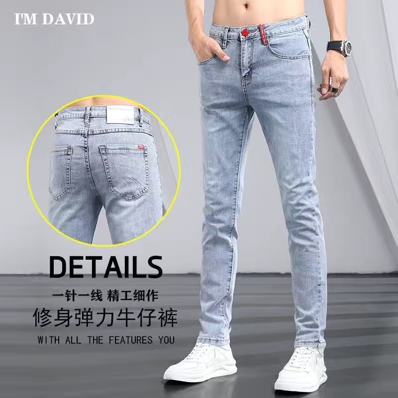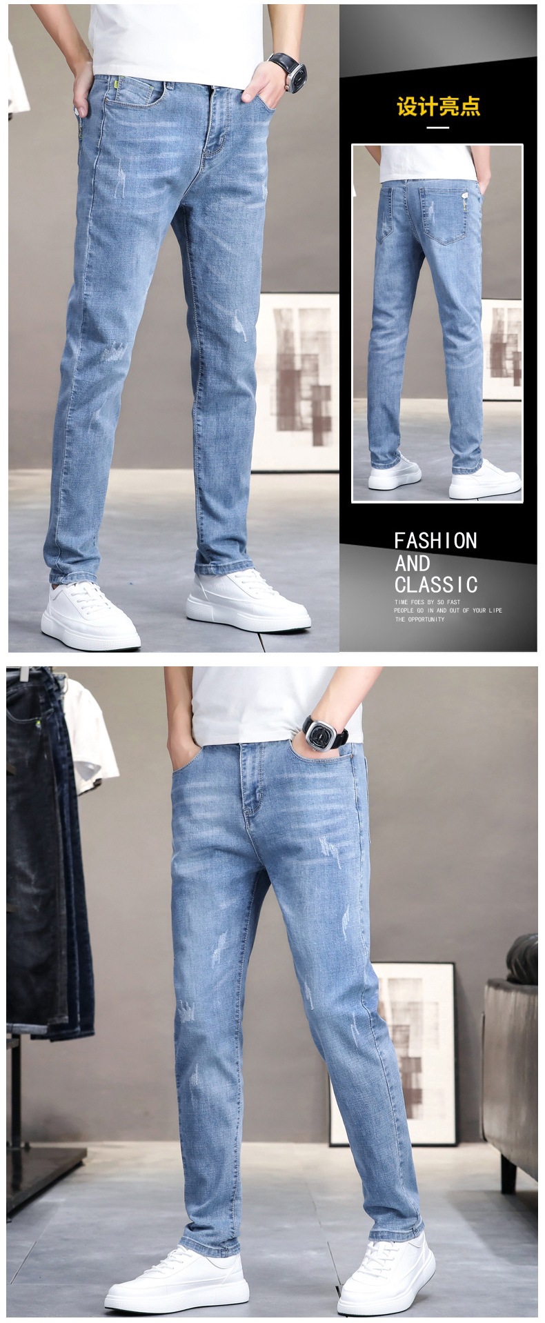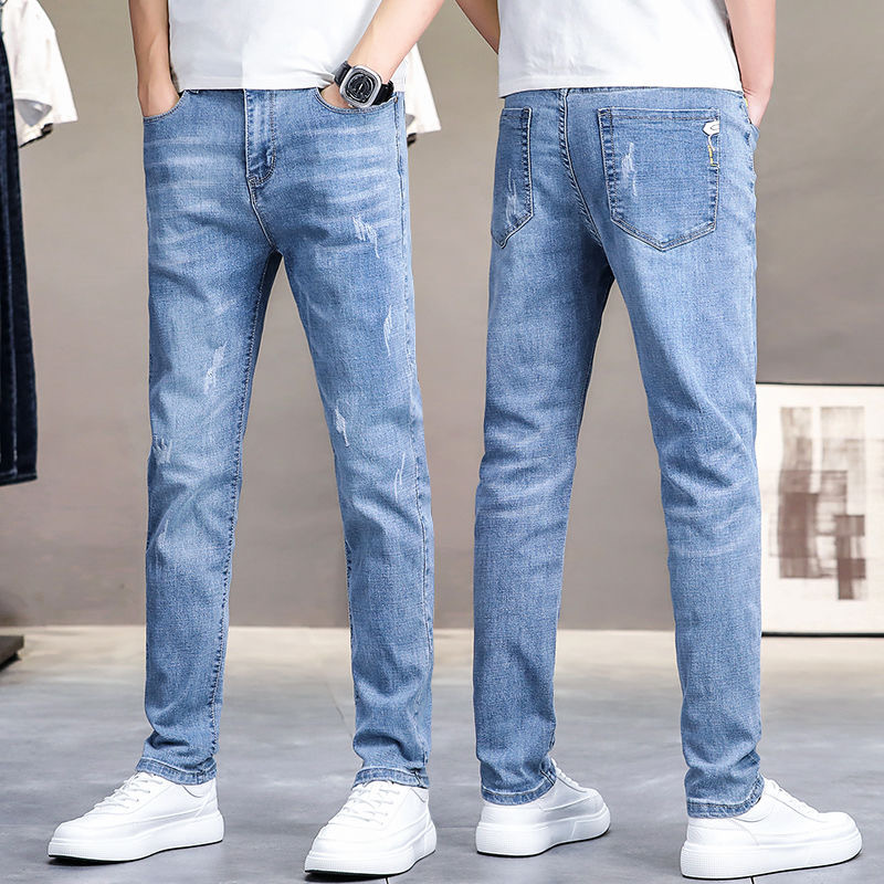 여름 라이트 컬러 청바지 남성용 얇은 슬림 핏 스트레치 올매치 새로운 도착 스트레이트-다리 느슨한 긴 바지 한국 스타일스토어 가기