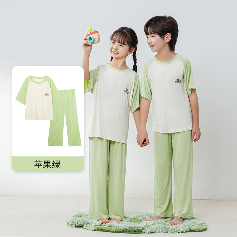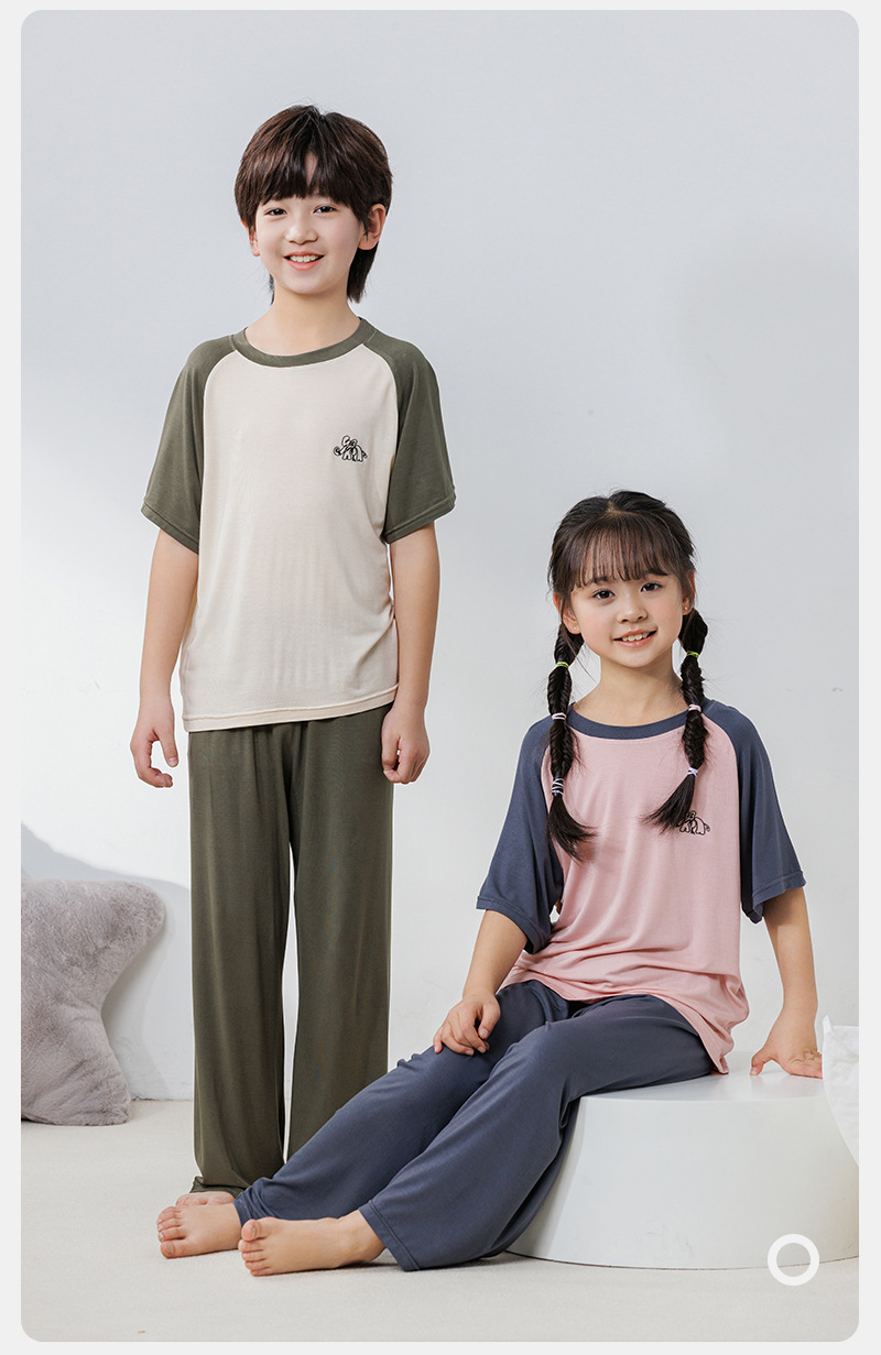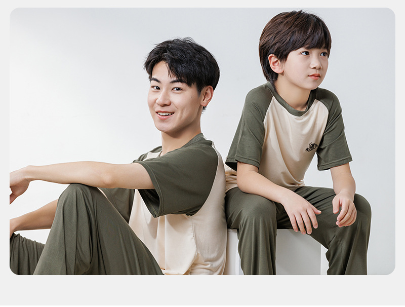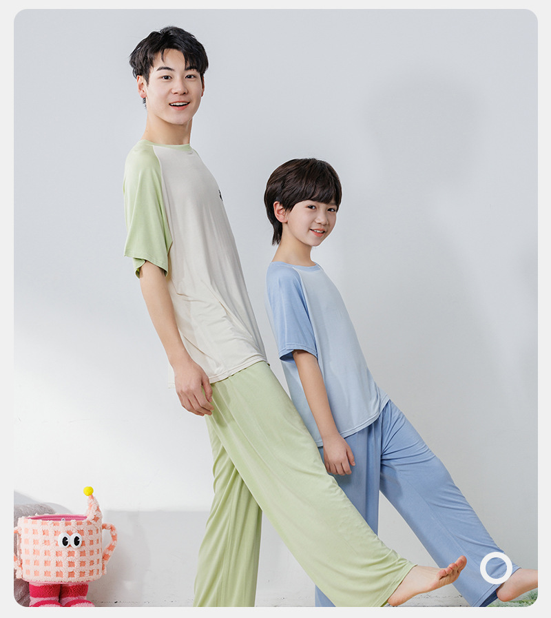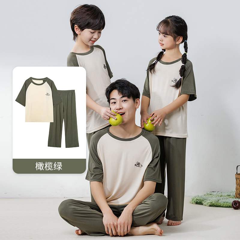부모와 자식 홈 의류 세트 어린이 잠옷 여름 얇은 반팔 바지 소년 소녀를위한 캐주얼 세트