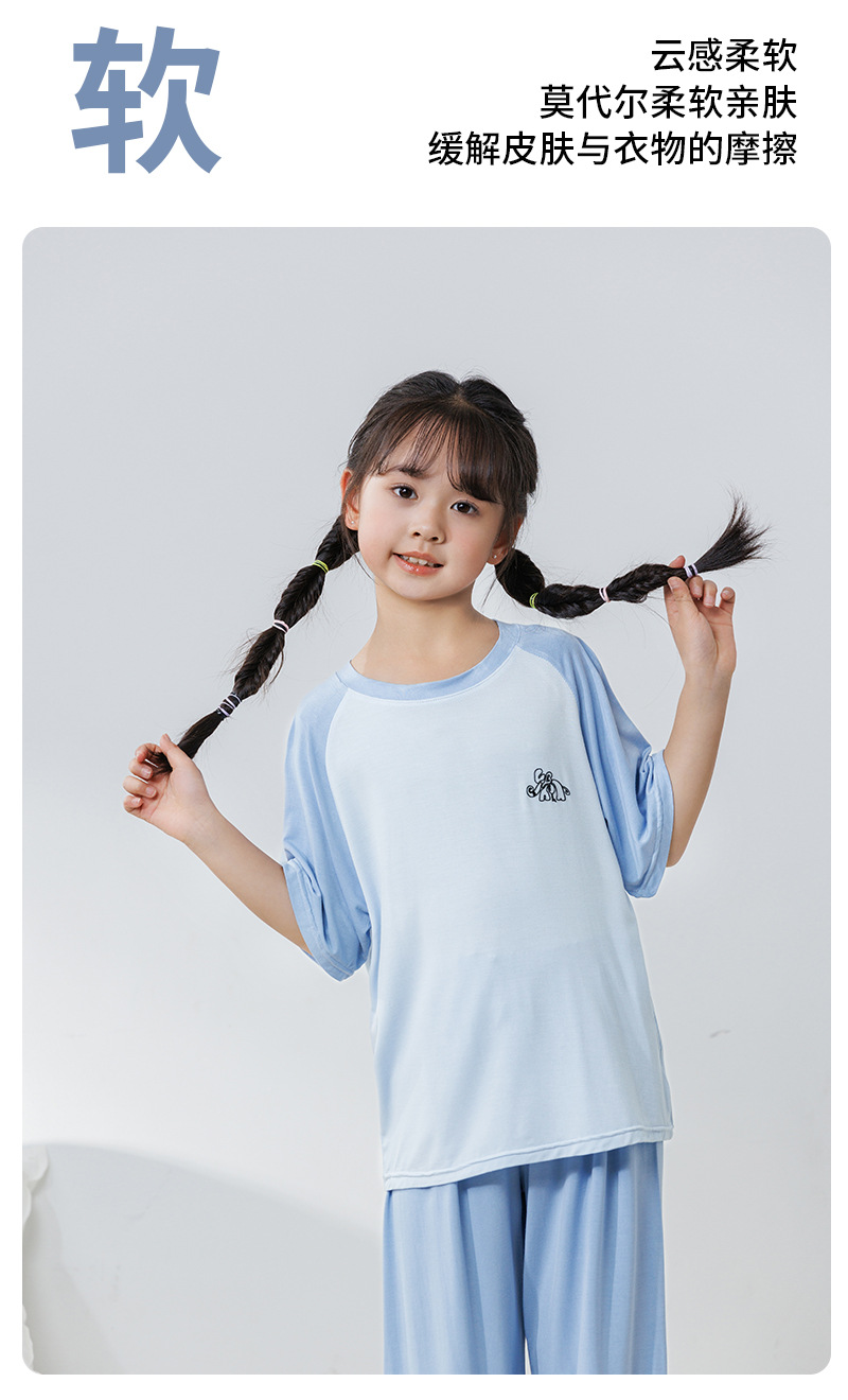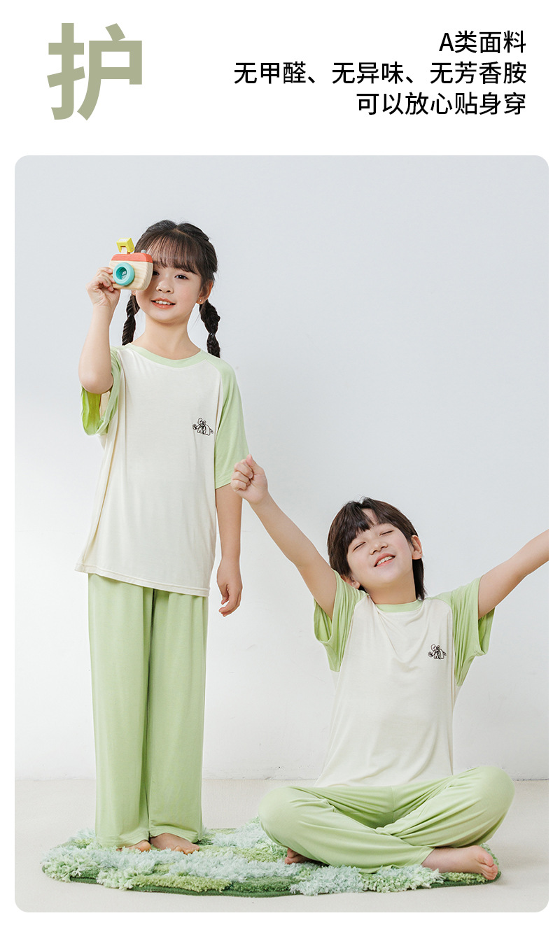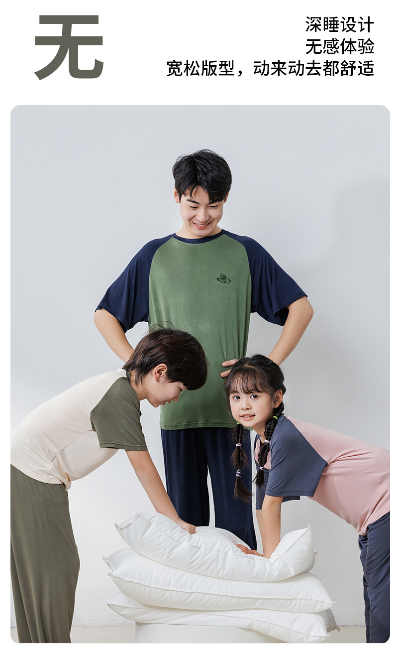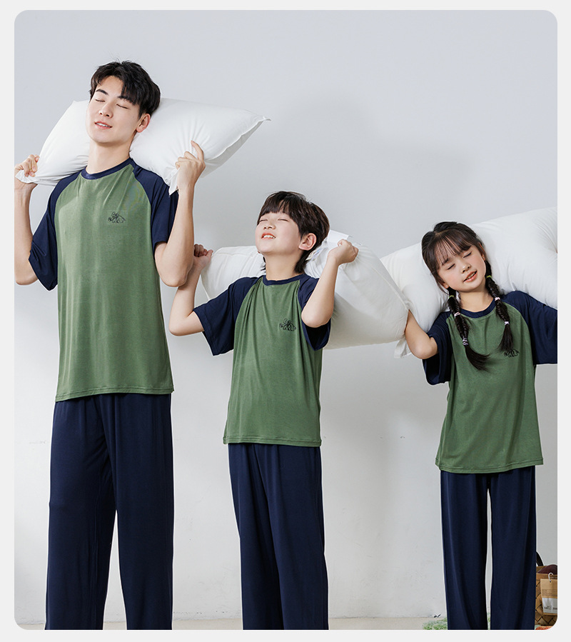 부모와 자식 홈 의류 세트 어린이 잠옷 여름 얇은 반팔 바지 소년 소녀를위한 캐주얼 세트스토어 가기