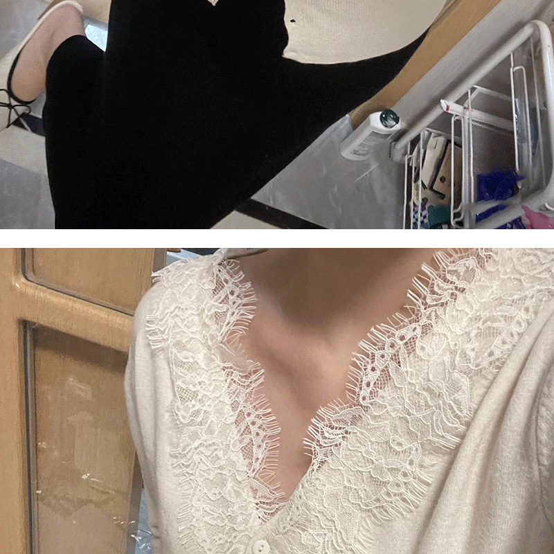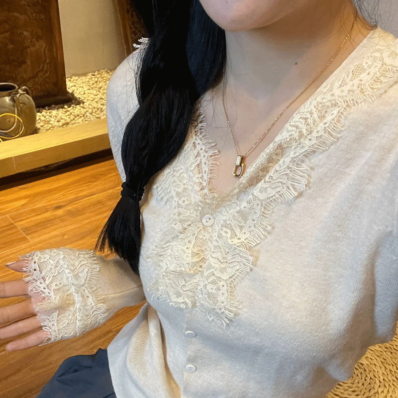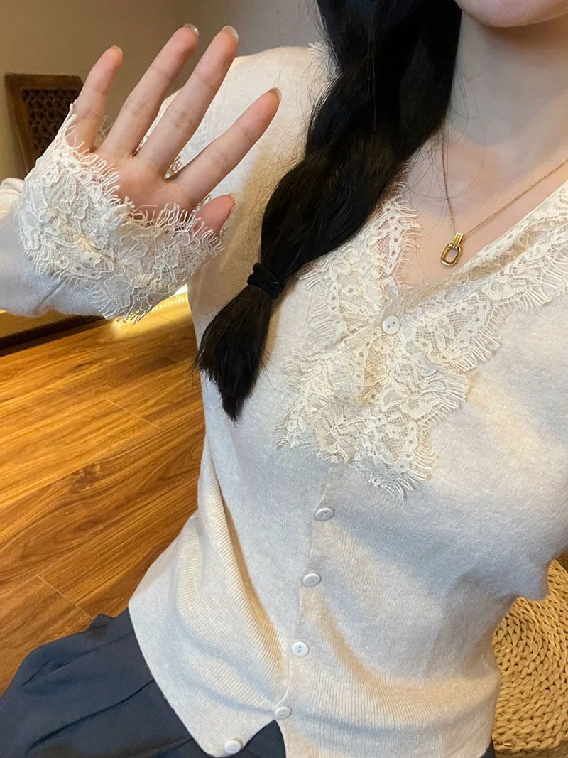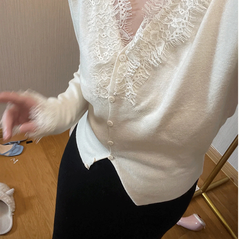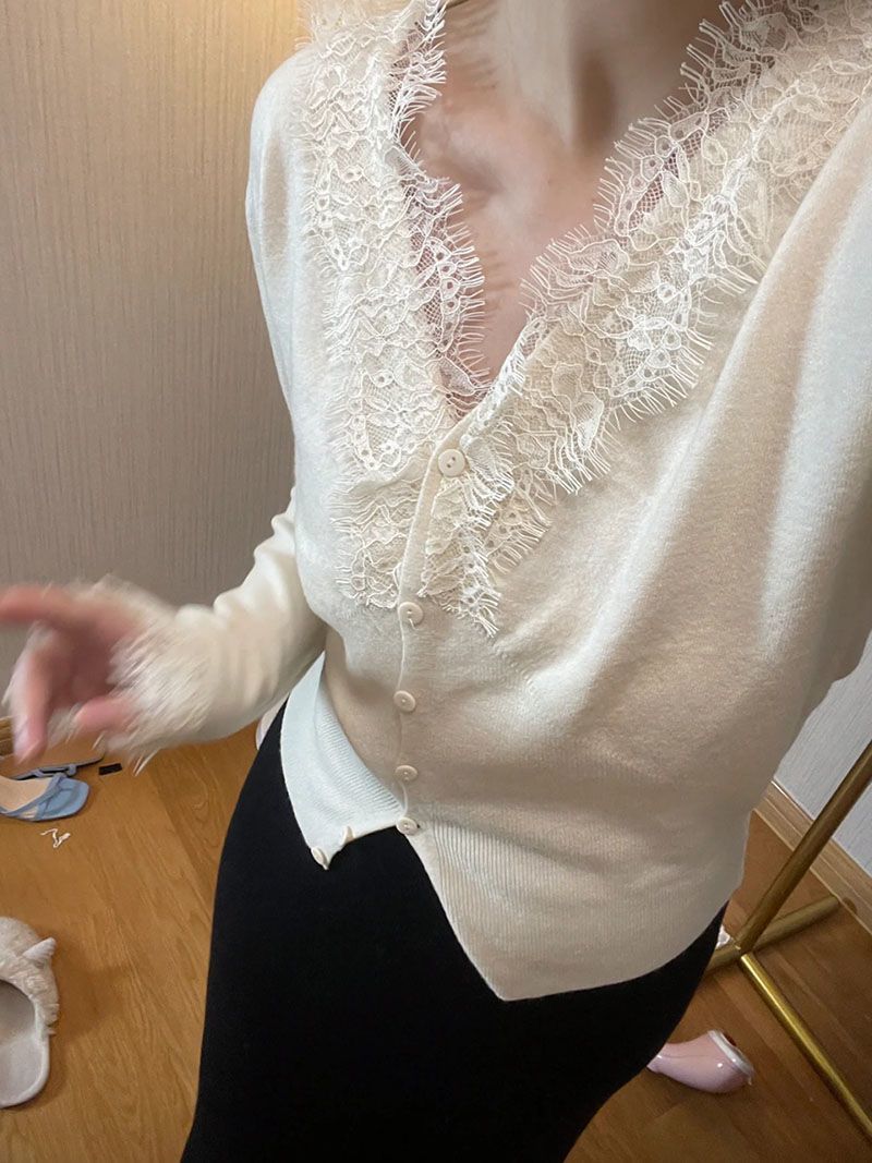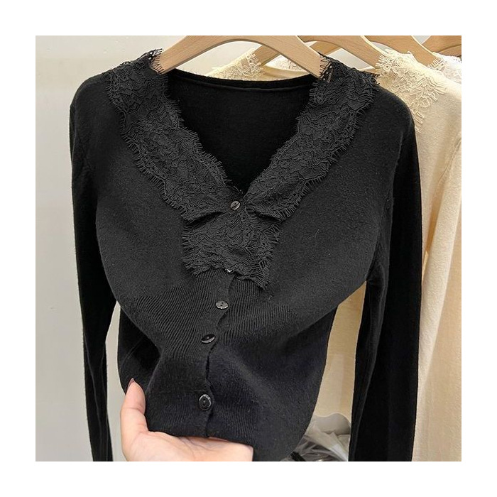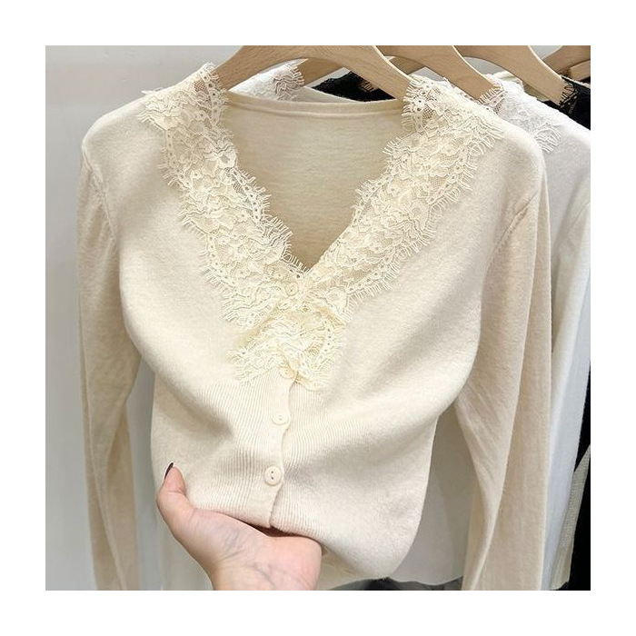 가을과 겨울 새로운 세련된 나이를 줄이는 여성 스타일베이스 셔츠 슬림 핏 슬리밍 레이스 바느질 유행 틈새 최고의 여성 의류스토어 가기