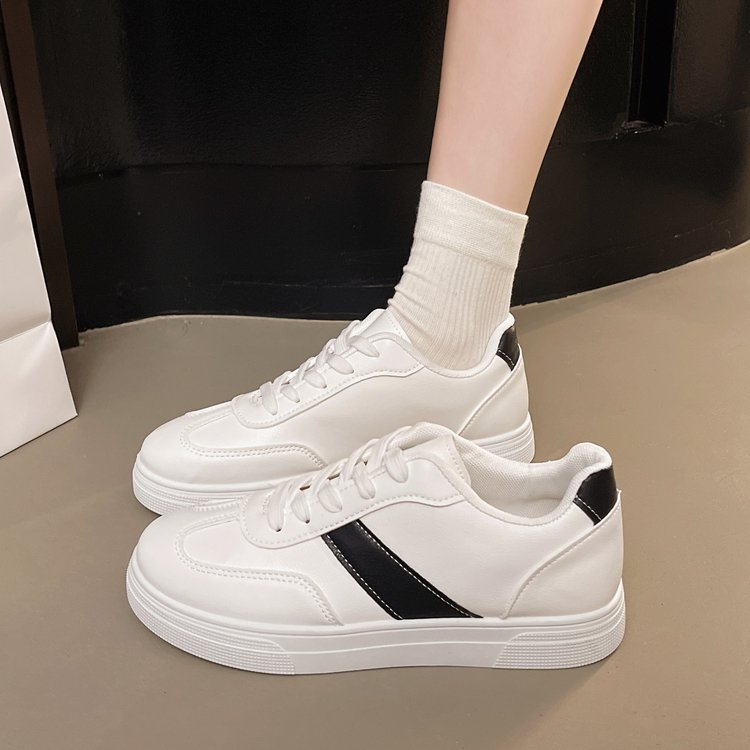 화이트 슈즈 여성 슈즈 2025 새로운 봄과 가을 화이트 슈즈 올 매치 학생 레트로 컬러 매칭 레이스 업 캐주얼 슈즈 스케이트 슈즈스토어 가기