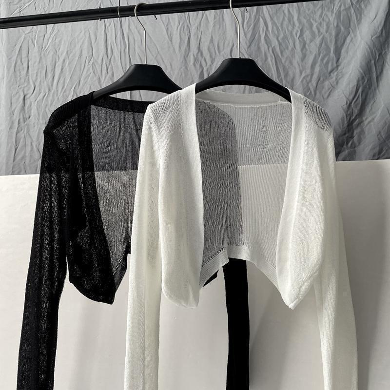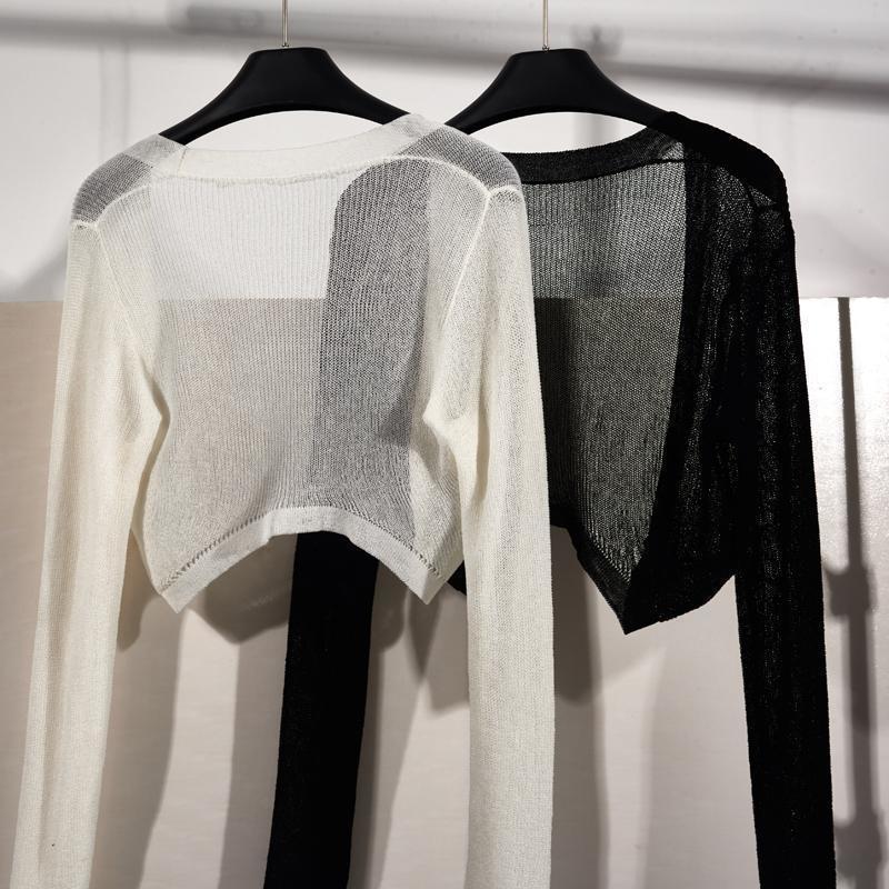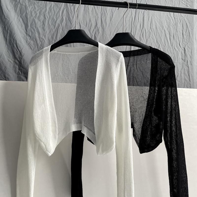 여름 착용 선 스크린 목도리 얇은 아이스 실크 니트 카디건 재킷 여성 한국 스타일 느슨한 블랙 쇼트 탑 트렌디스토어 가기