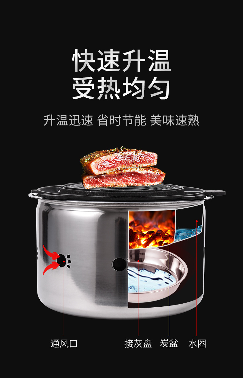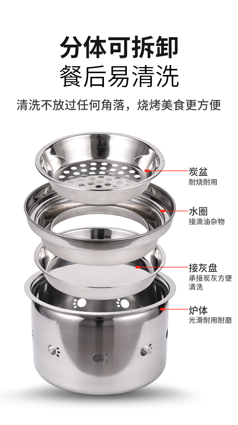 바베큐 스토브 환경 친화적 인 숯 바베큐 냄비 그릴 플레이트 야외 상업용 탄소 오븐 스테인레스 스틸 바디 세척 및 이동식