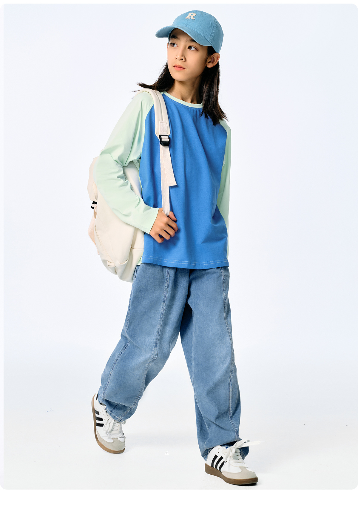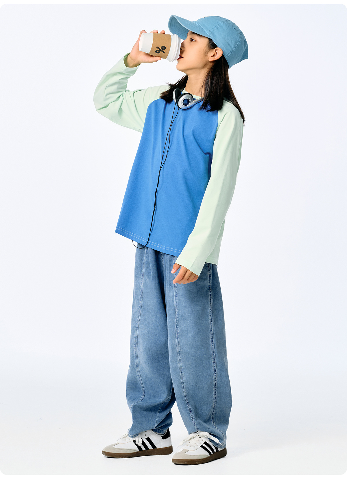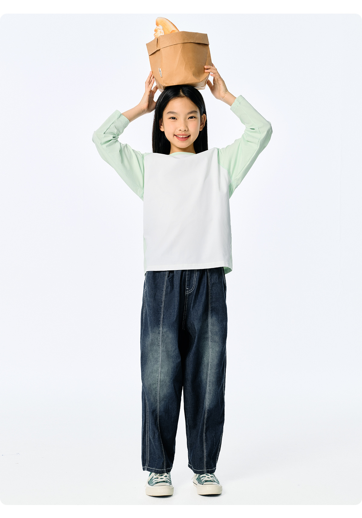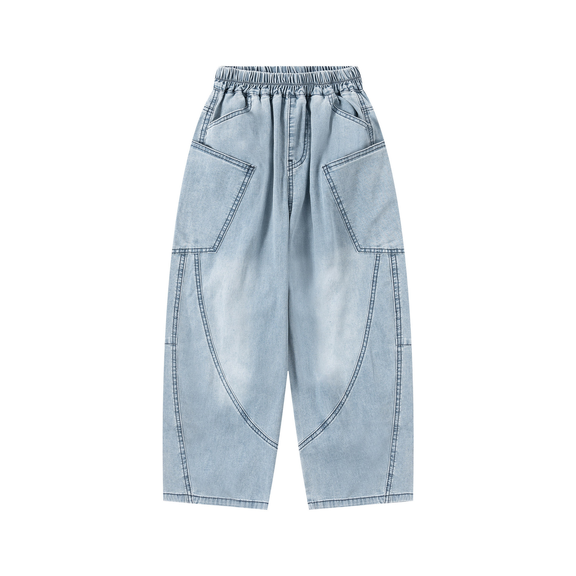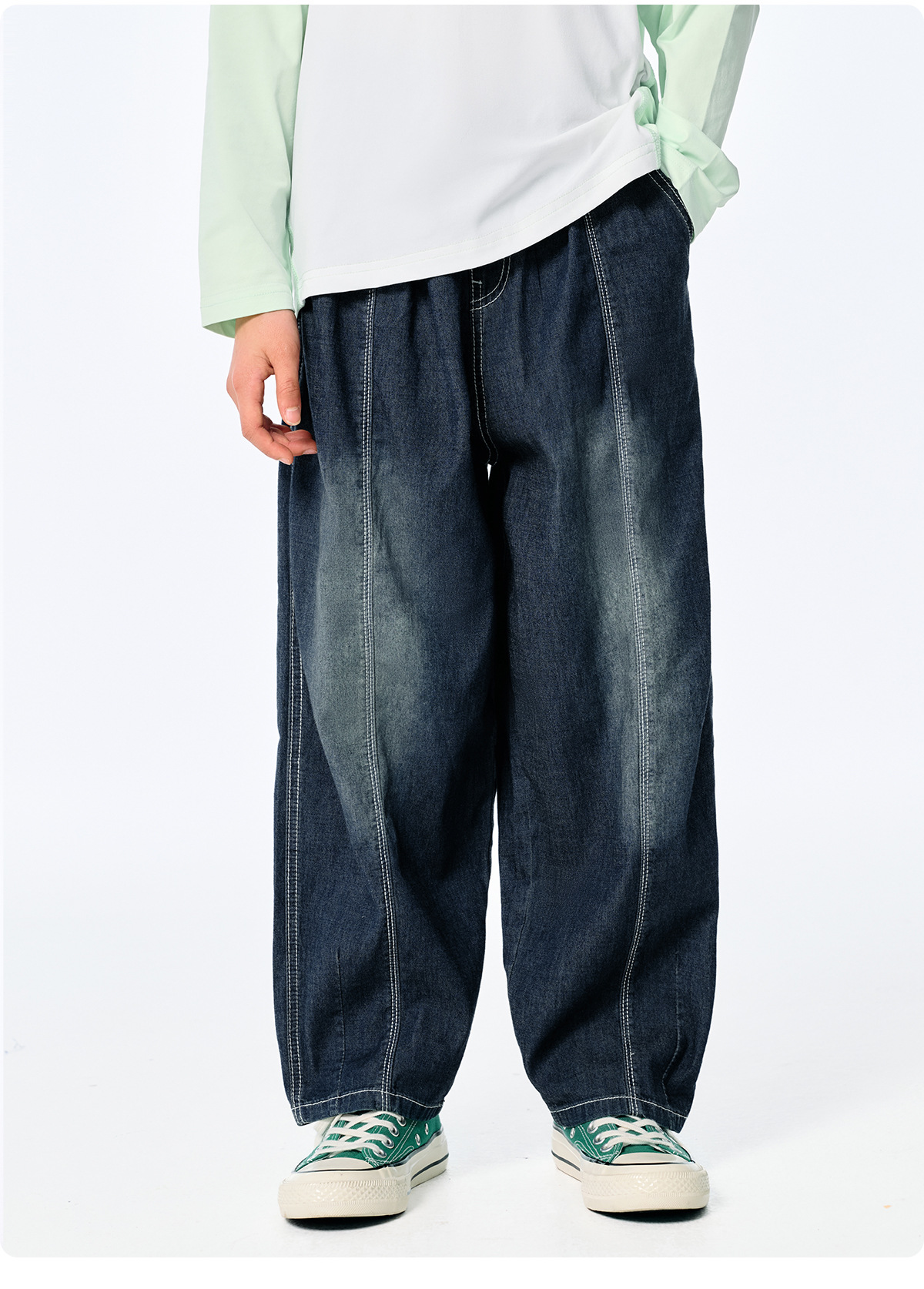 DK 아동복 25 가을 풍선 바지 소녀 및 소년용 일본 복고풍 청바지 아동용 중대형 아동 캐주얼 바지