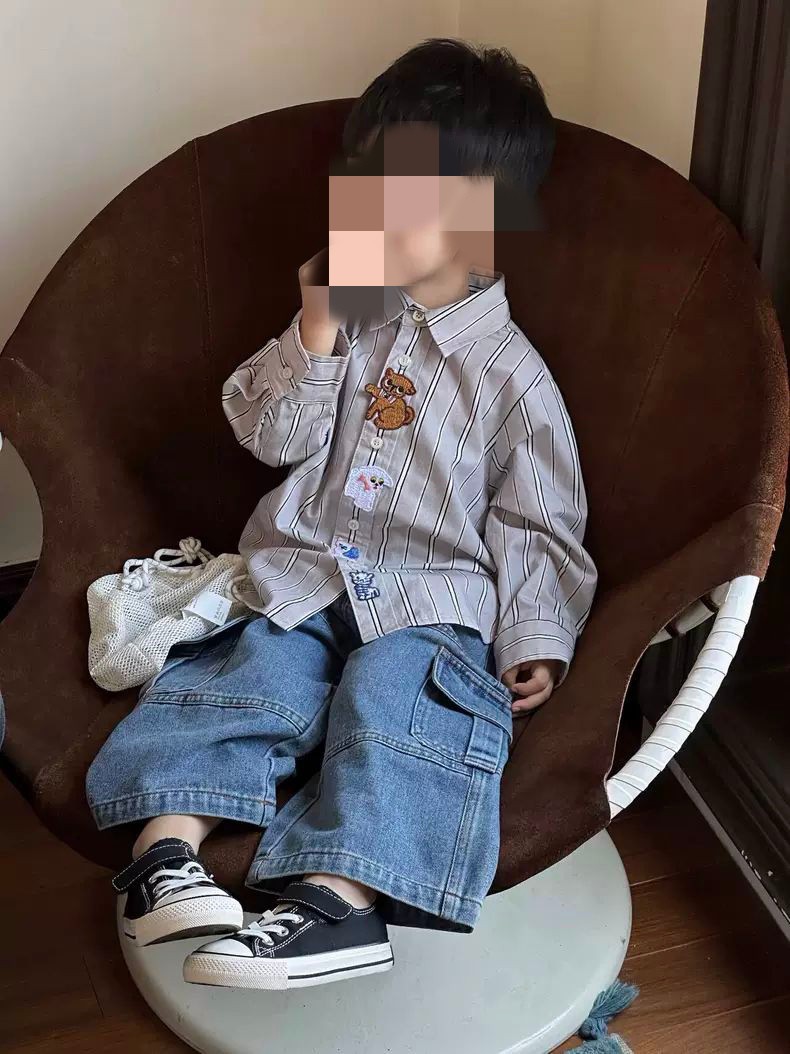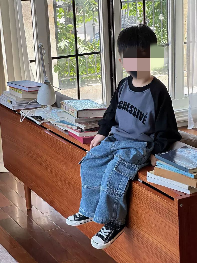 2025 남아용 데님 팬츠 유치원 가을 의류 중소 아동용 바지 스트레이트 팬츠 봄 루즈핏 트렌디 오픈 디자인스토어 가기