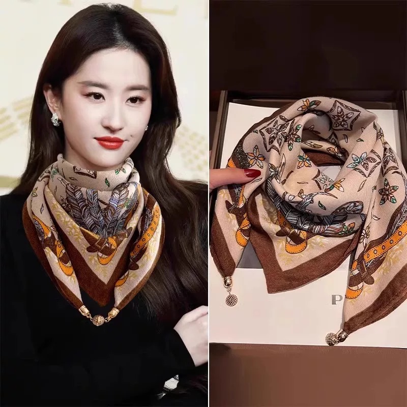 마그네틱 버클 스퀘어 스카프 70 작은 실크 스카프 봄과 가을 목 보호 작은 스카프 여성 하이 엔드 센스 한국 스타일 우아한 올 매치 실크 스카프 여성