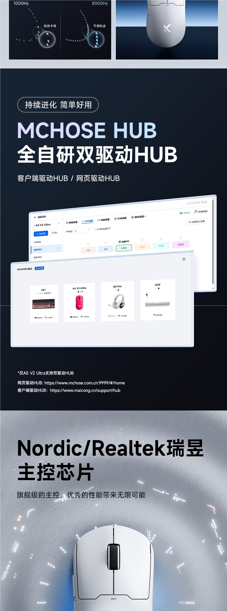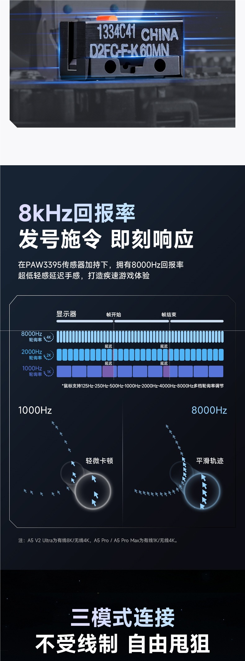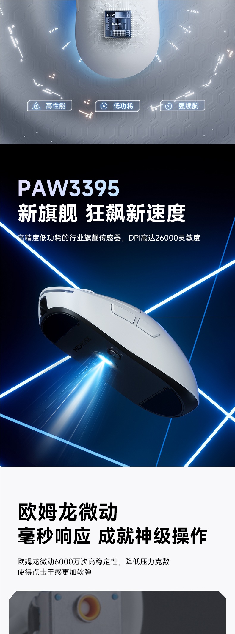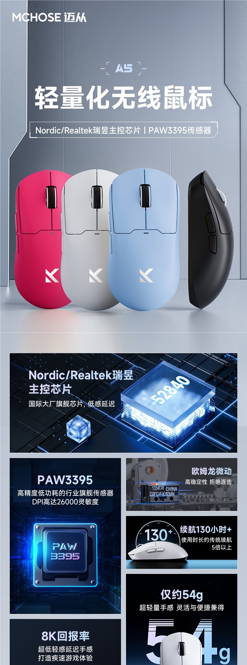 MCHOSEA5 무선 게임 마우스 블루투스 3 모드 PAW3395 E-스포츠 울트라 경량 ProMax스토어 가기