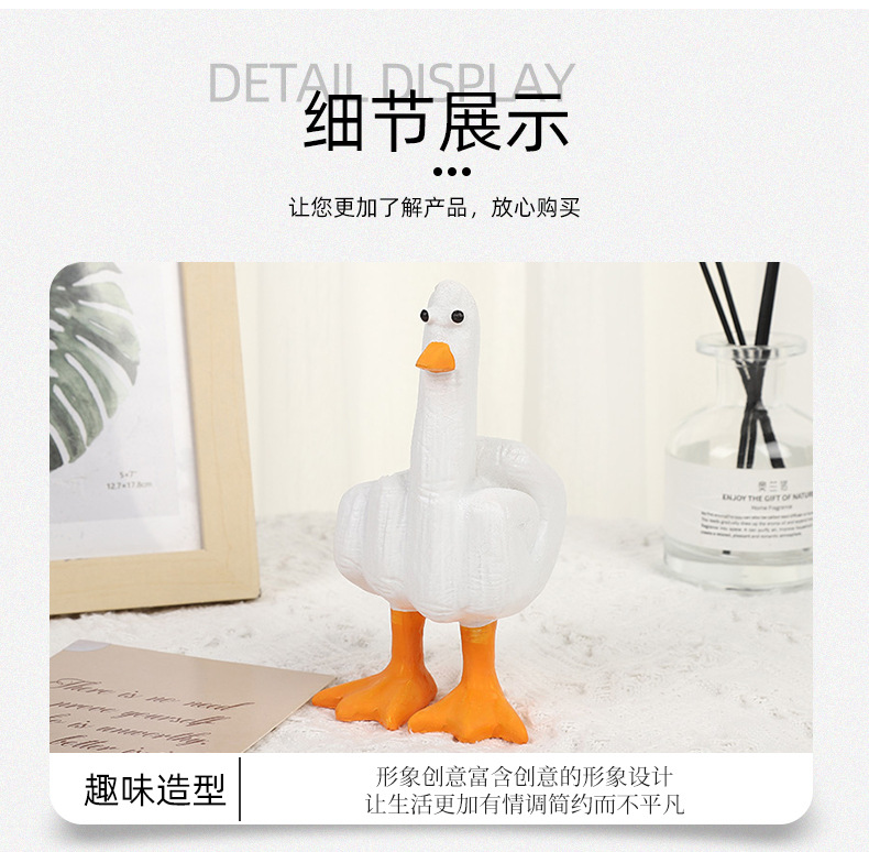국경 간 중간 손가락 오리 장식품 보내기 친구 트릭 재미있는 생일 선물 수지 공예 사무실 데스크탑 장식