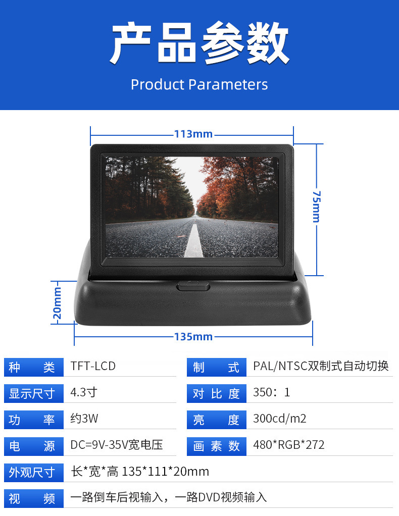반전 카메라 이미지 디스플레이 4.3 인치 LCD HD 접이식 자동차 디스플레이 반전 자동차 뒷모습스토어 가기