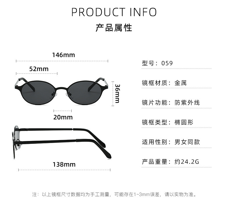 2025 새로운 금속 타원형 프레임 선글라스 여성용 하이 센스 UV 복고풍 맞춤형 선글라스스토어 가기